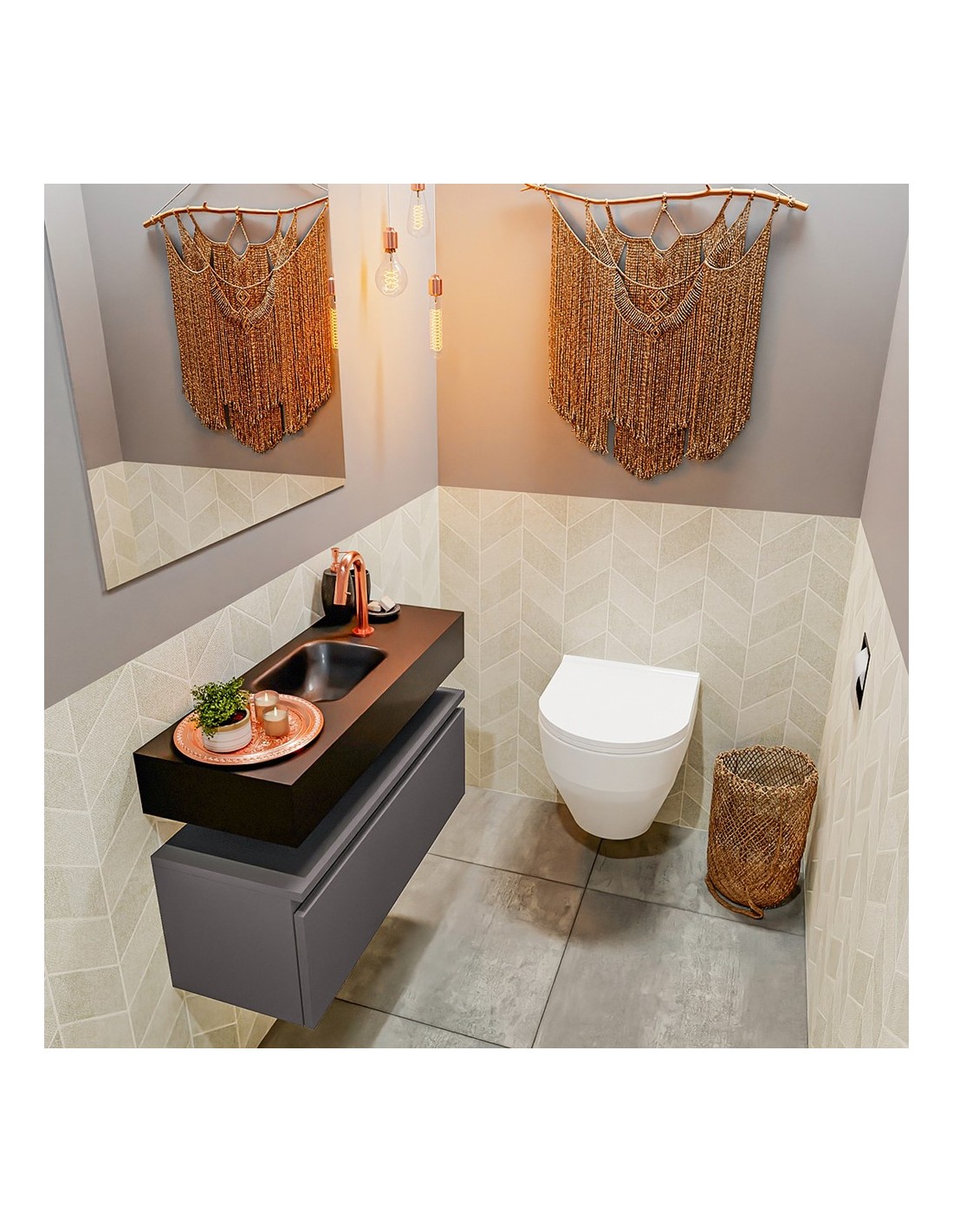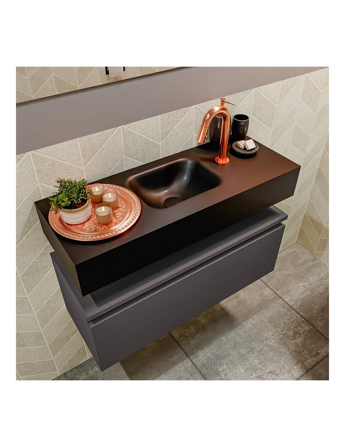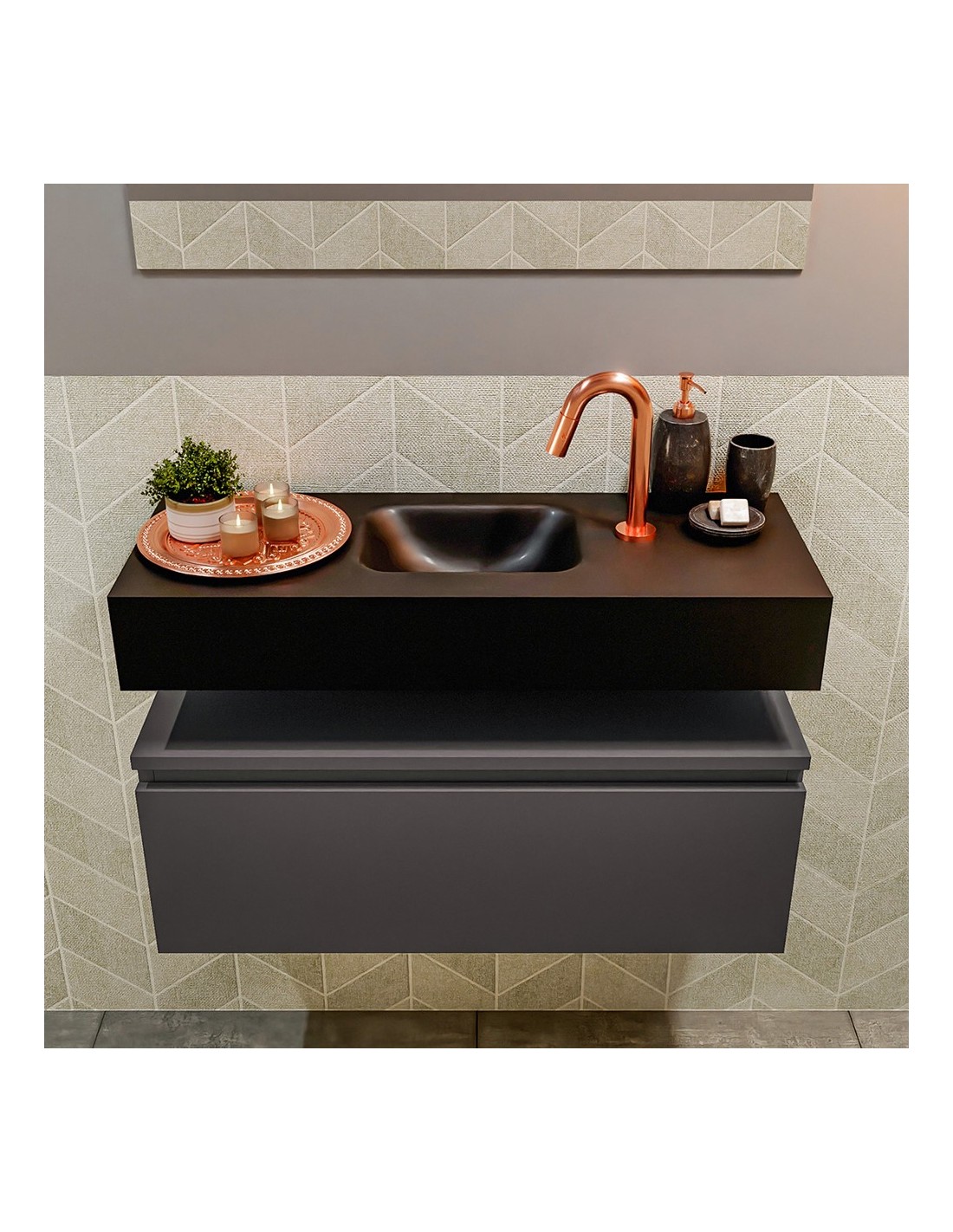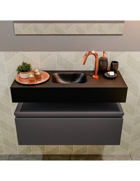 ANDOR Komplet badmiljø centreret håndvask B80 cm MDF - Mørkegrå/Sort