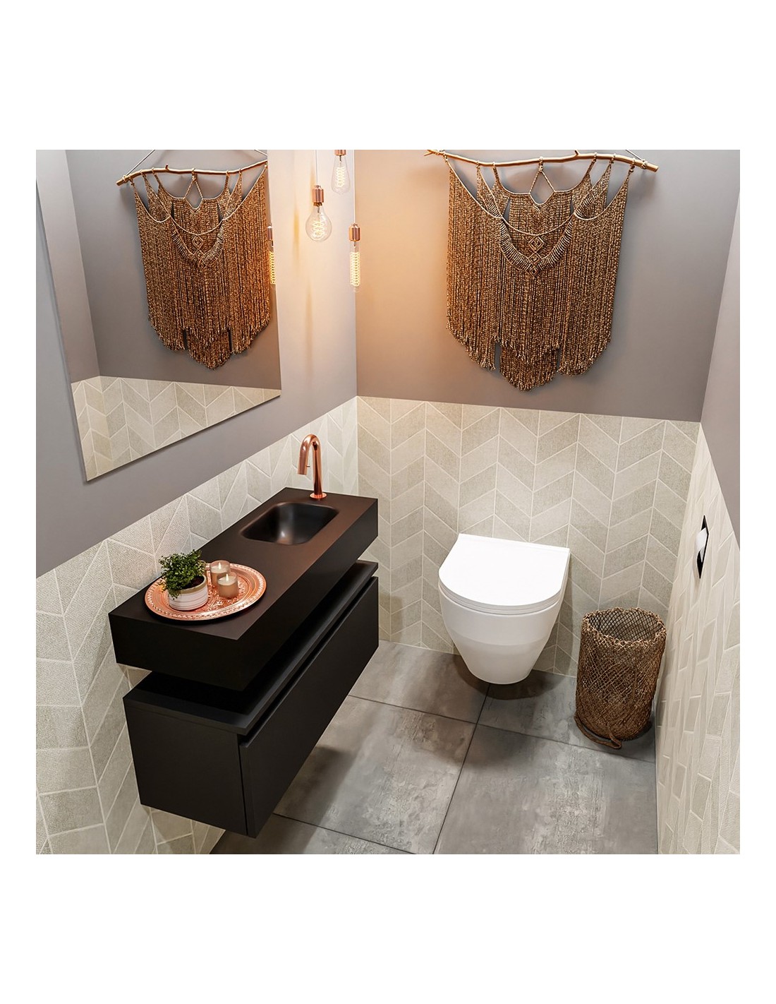 ANDOR Komplet badmiljø højrevendt håndvask B80 cm MDF - Sort/Sort