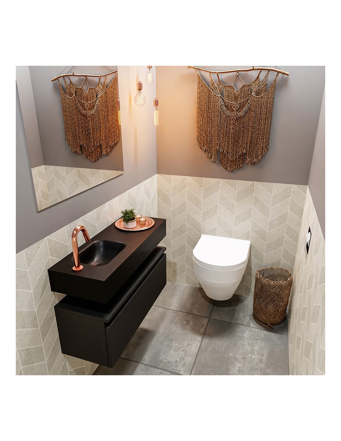 ANDOR Komplet badmiljø venstrevendt håndvask B80 cm MDF - Sort/Sort