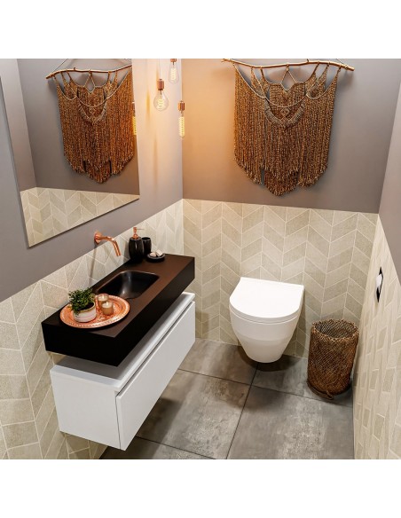 ANDOR Komplet badmiljø centreret håndvask B80 cm MDF - Talkum/Sort