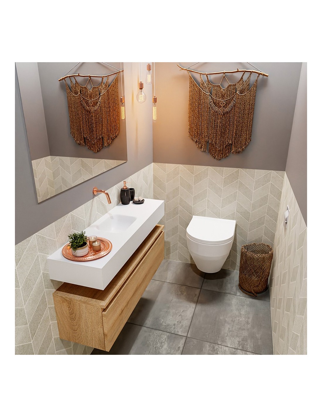 ANDOR Komplet badmiljø centreret håndvask B100 cm MDF - Vasket eg/Talkum