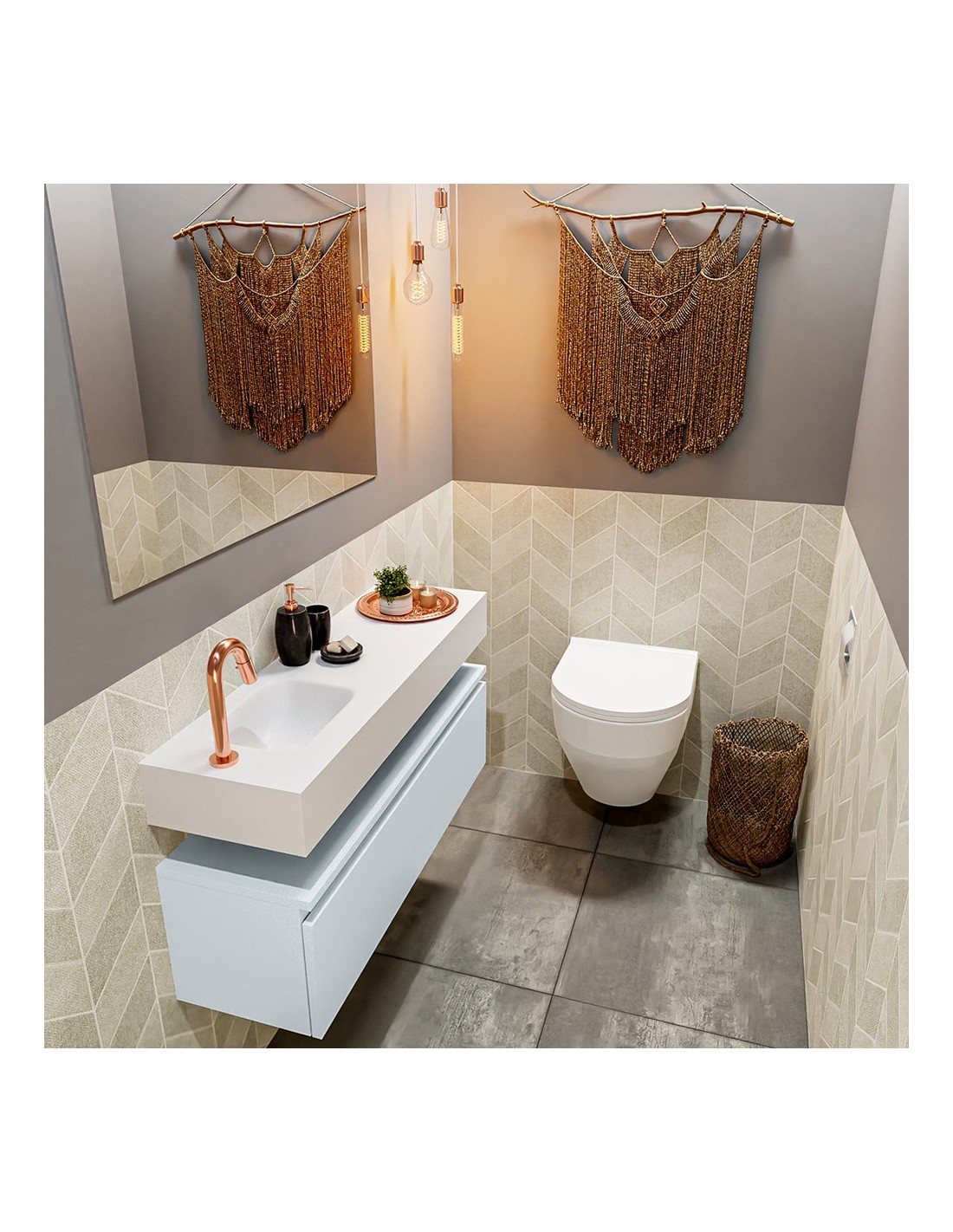 ANDOR Komplet badmiljø venstrevendt håndvask B100 cm MDF - Svag grå/Talkum