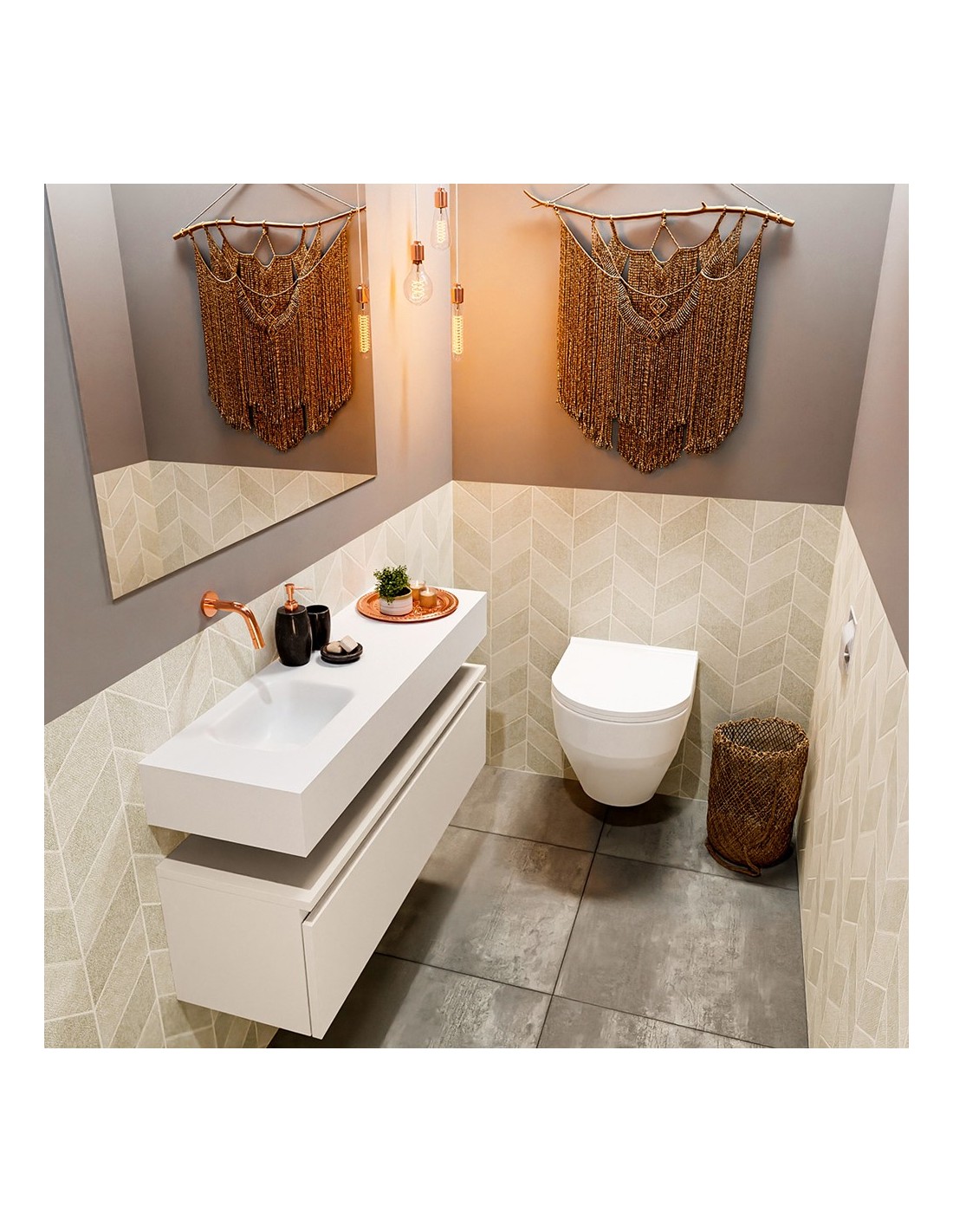 ANDOR Komplet badmiljø venstrevendt håndvask B100 cm MDF - Linned/Talkum