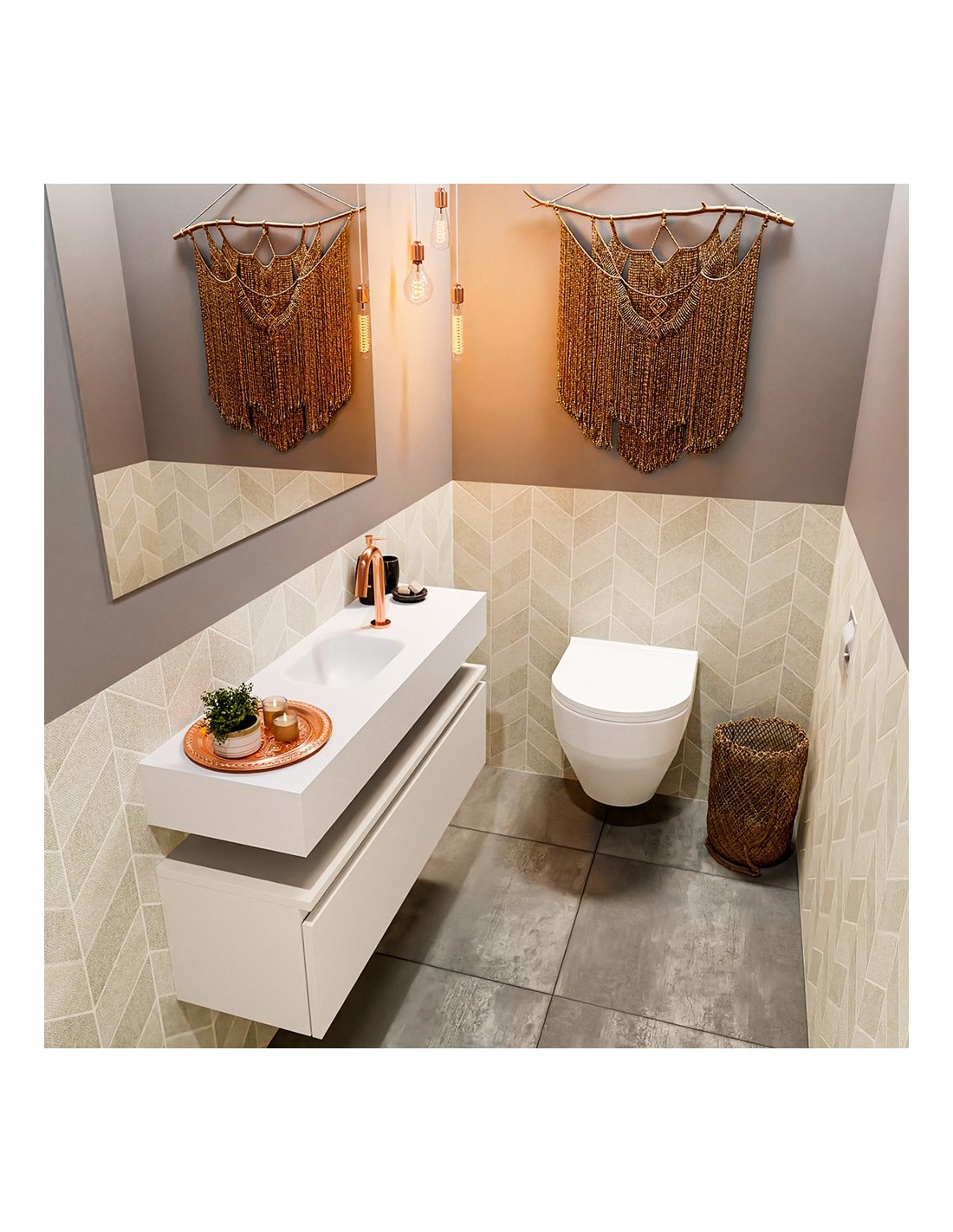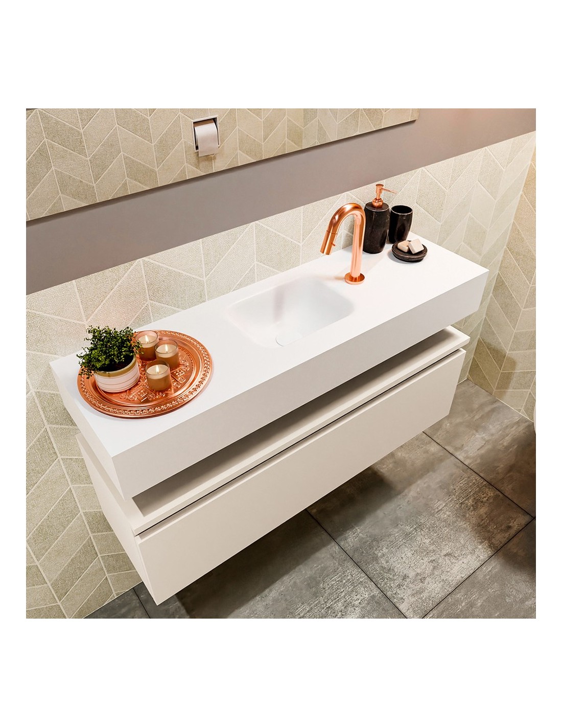 ANDOR Komplet badmiljø centreret håndvask B100 cm MDF - Linned/Talkum