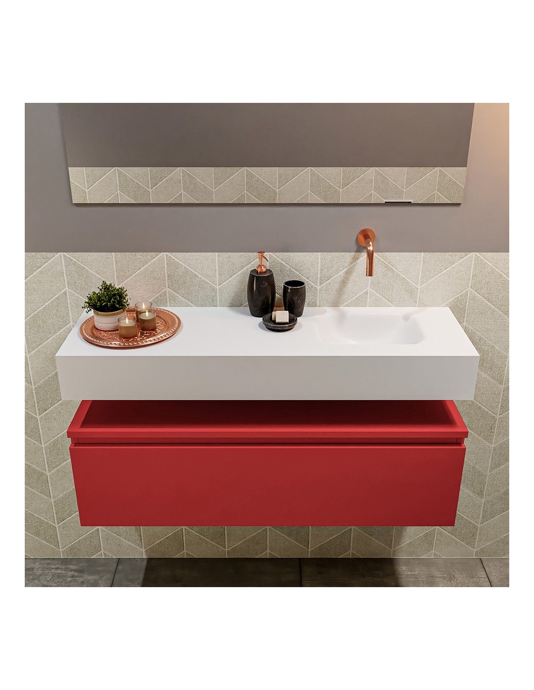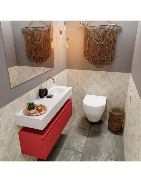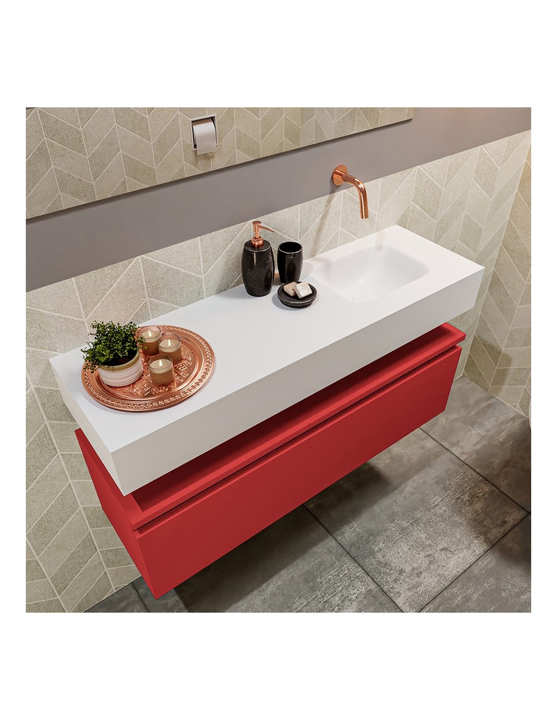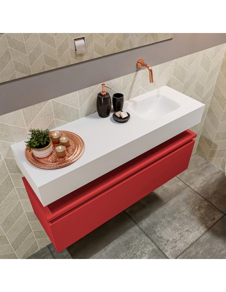 ANDOR Komplet badmiljø højrevendt håndvask B100 cm MDF - Rød/Talkum