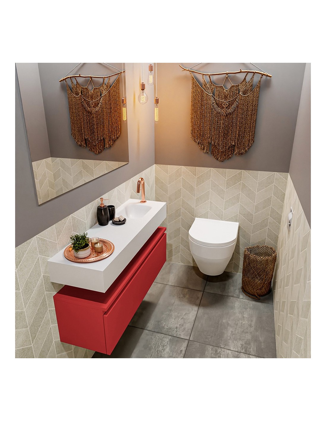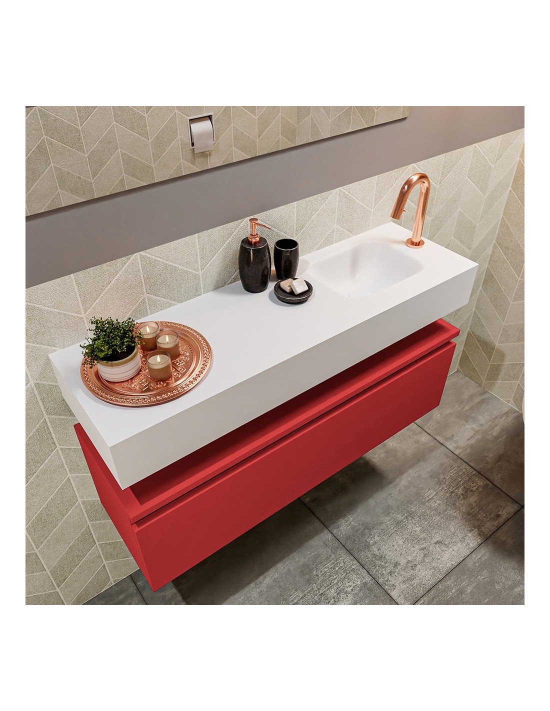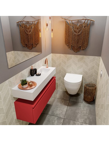 ANDOR Komplet badmiljø højrevendt håndvask B100 cm MDF - Rød/Talkum