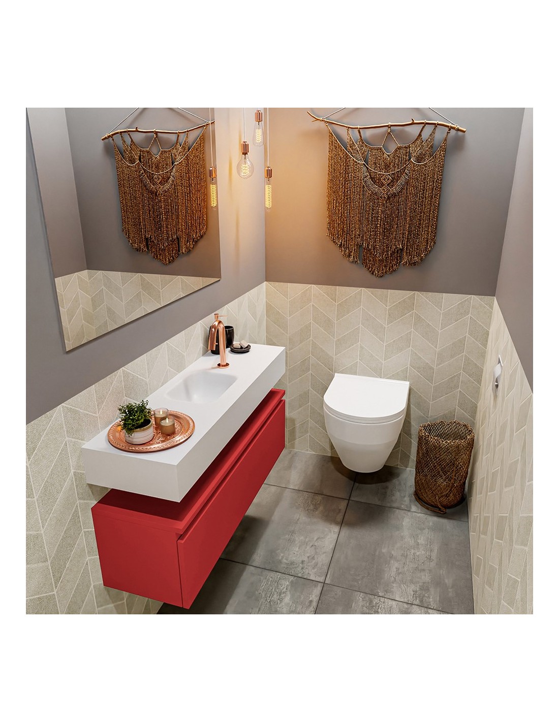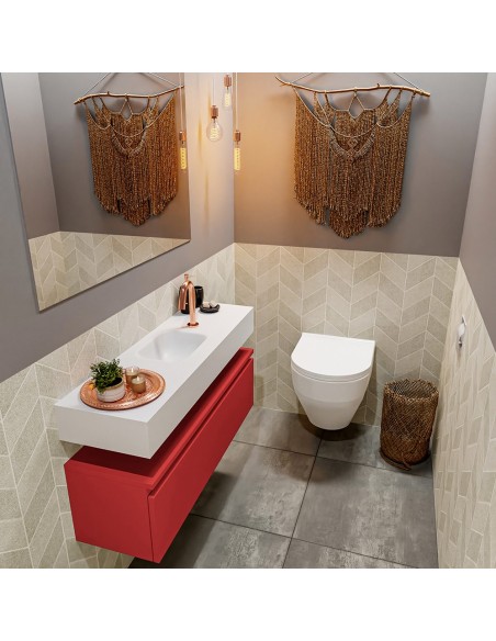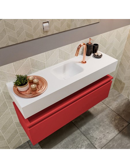 ANDOR Komplet badmiljø centreret håndvask B100 cm MDF - Rød/Talkum