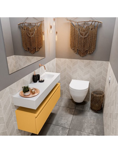 ANDOR Komplet badmiljø højrevendt håndvask B100 cm MDF - Okker/Talkum
