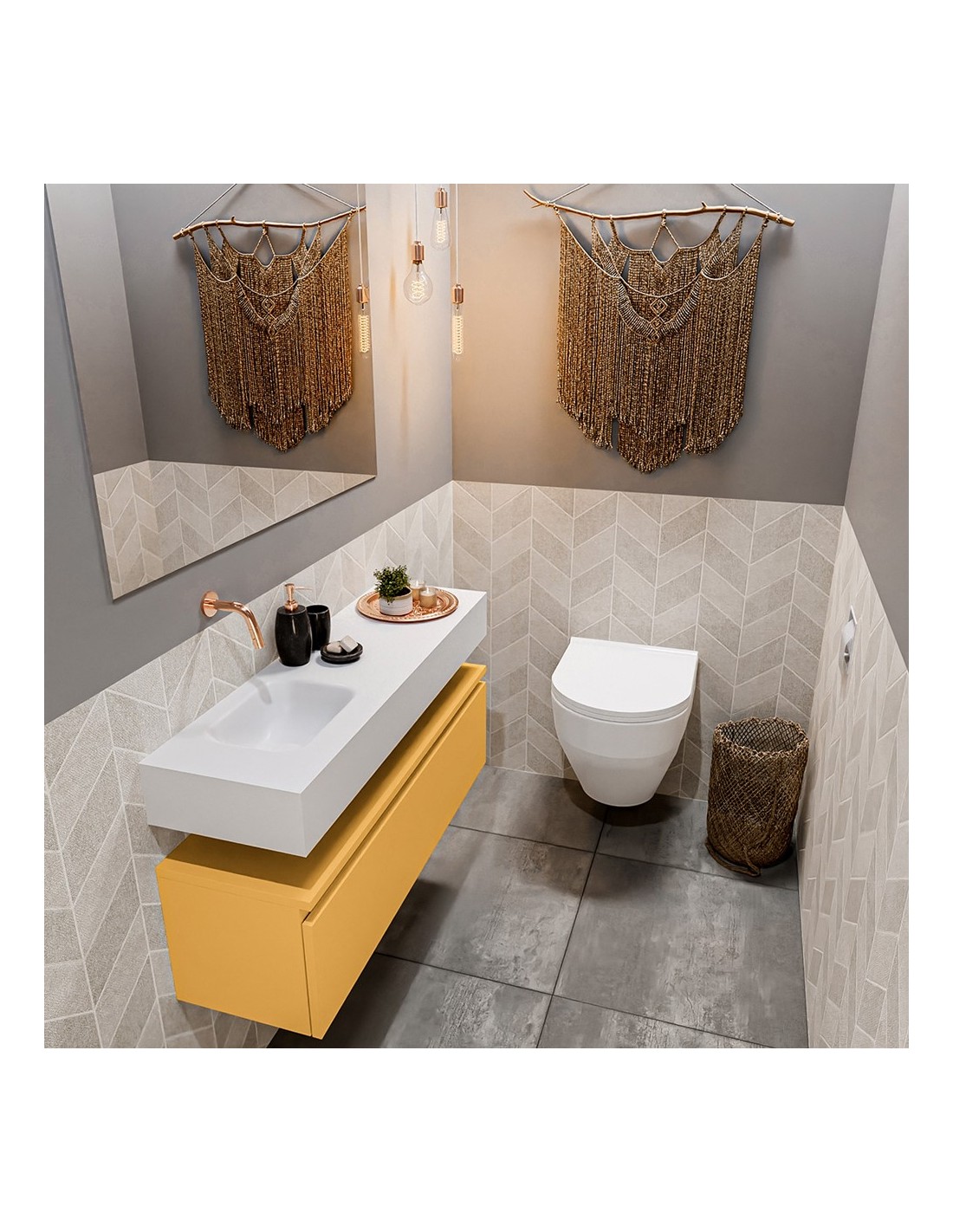 ANDOR Komplet badmiljø venstrevendt håndvask B100 cm MDF - Okker/Talkum