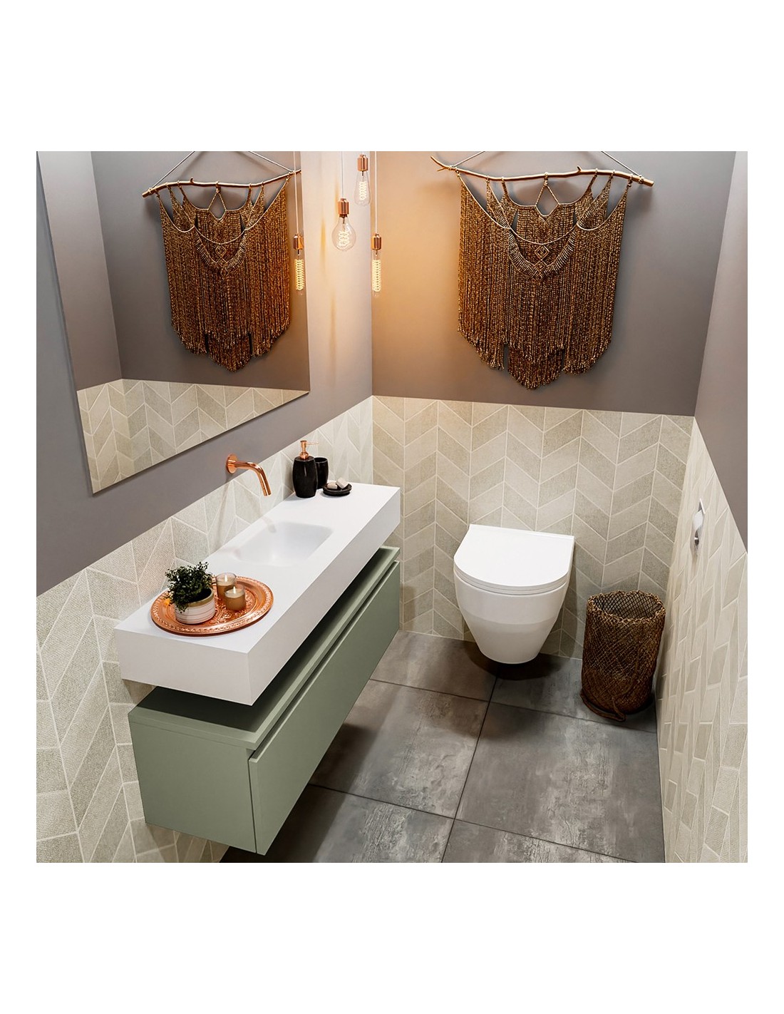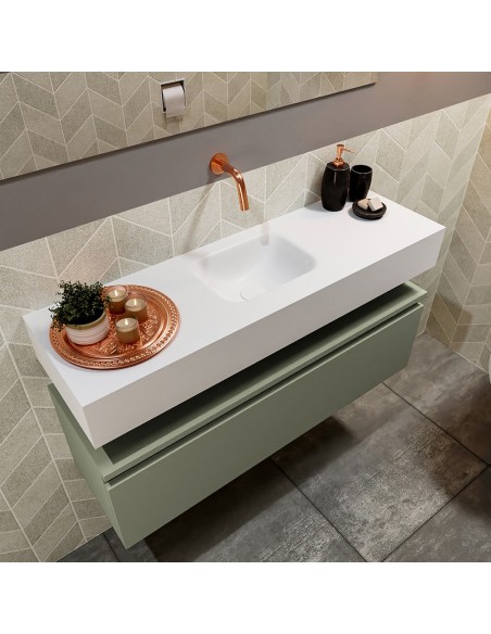 ANDOR Komplet badmiljø centreret håndvask B100 cm MDF - Armygrøn/Talkum