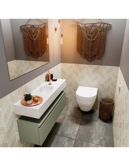 ANDOR Komplet badmiljø centreret håndvask B100 cm MDF - Armygrøn/Talkum