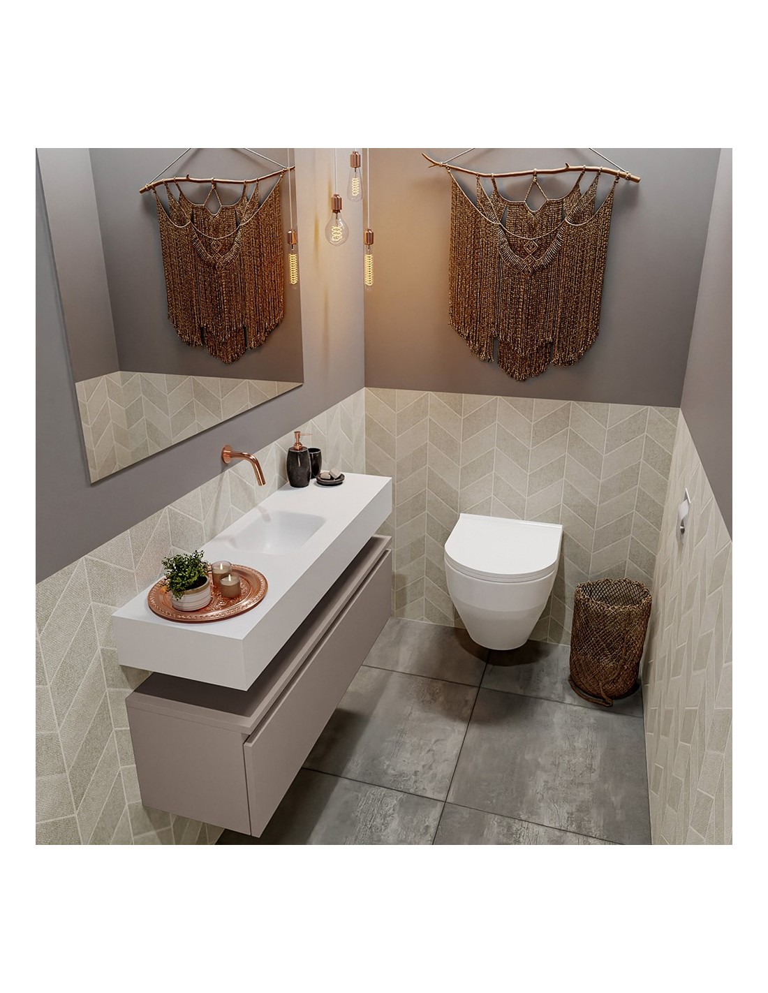 ANDOR Komplet badmiljø centreret håndvask B100 cm MDF - Røg/Talkum