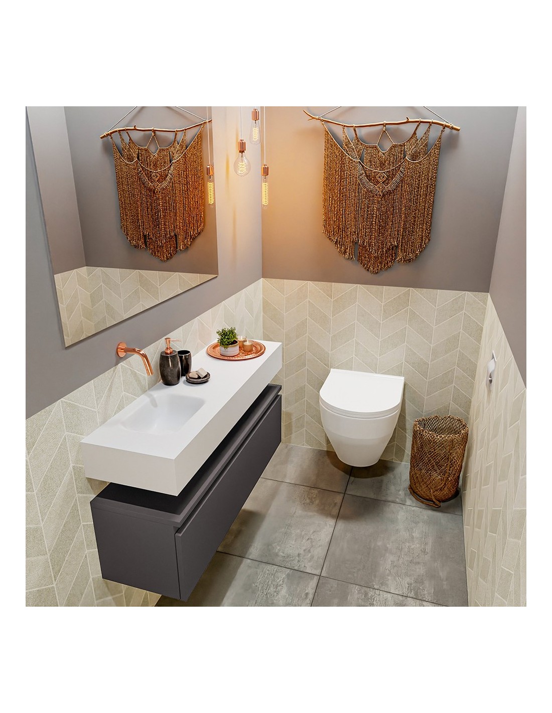 ANDOR Komplet badmiljø venstrevendt håndvask B100 cm MDF - Mørkegrå/Talkum