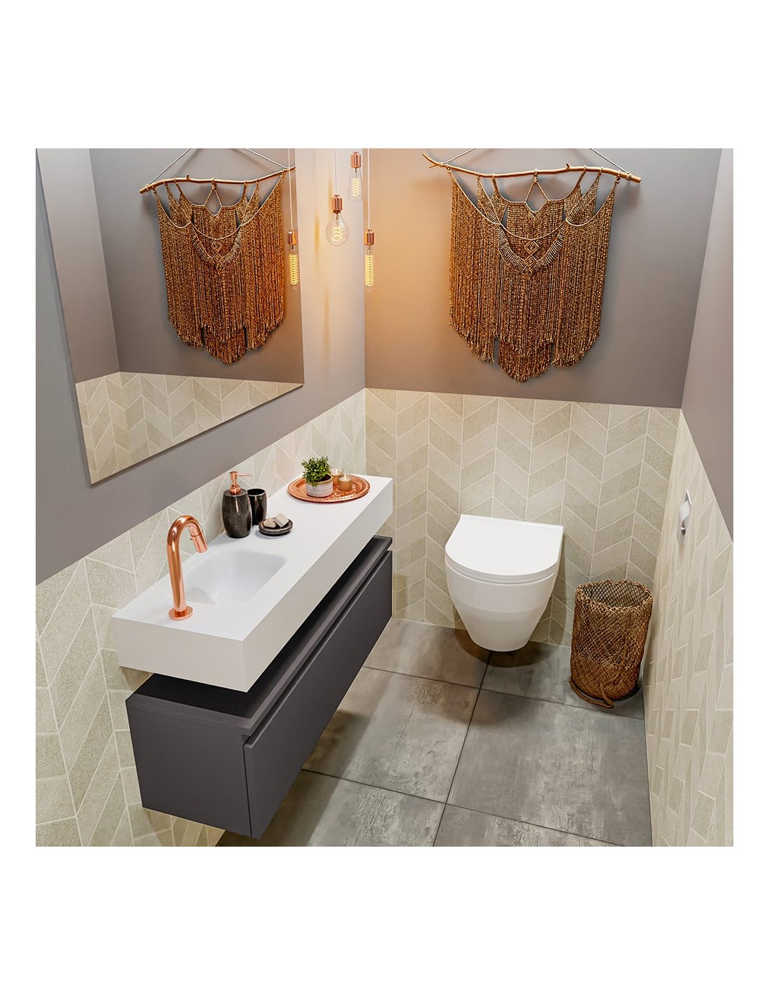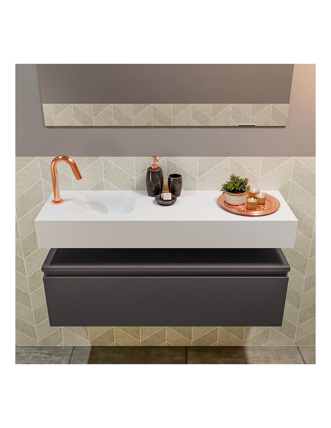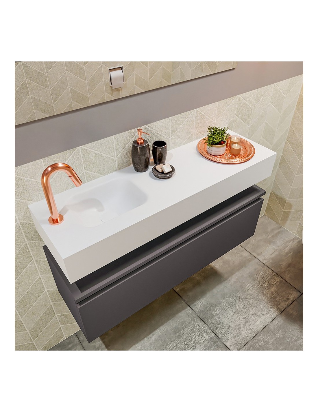 ANDOR Komplet badmiljø venstrevendt håndvask B100 cm MDF - Mørkegrå/Talkum