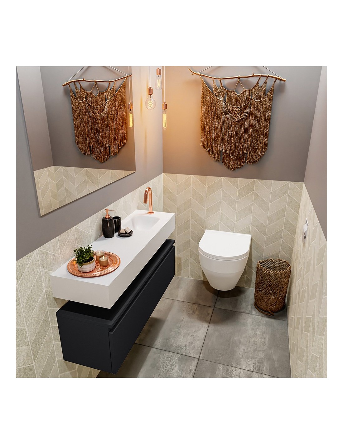 ANDOR Komplet badmiljø højrevendt håndvask B100 cm MDF - Sort/Talkum