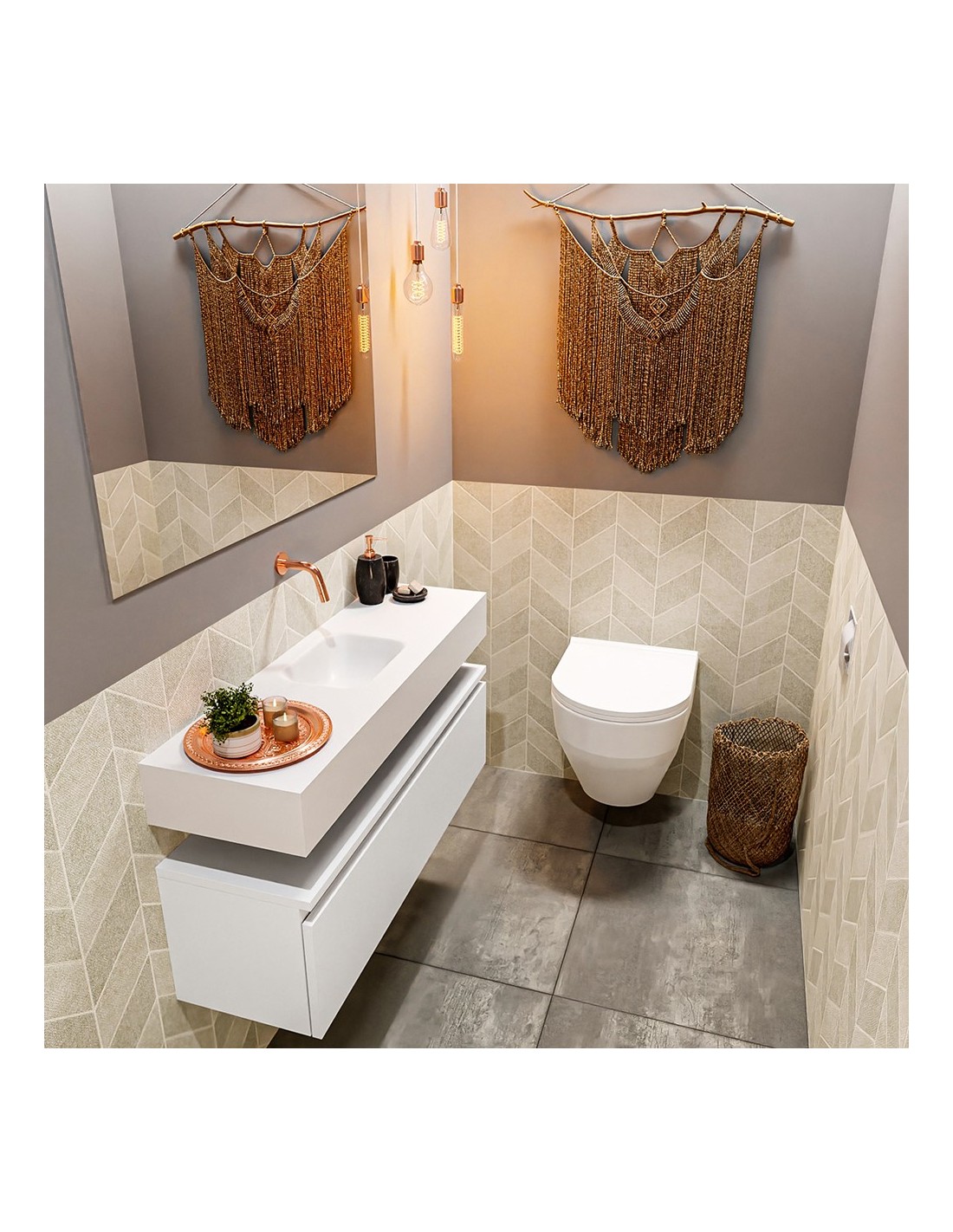 ANDOR Komplet badmiljø centreret håndvask B100 cm MDF - Talkum/Talkum