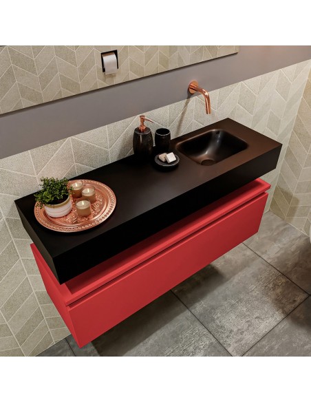 ANDOR Komplet badmiljø højrevendt håndvask B100 cm MDF - Rød/Sort