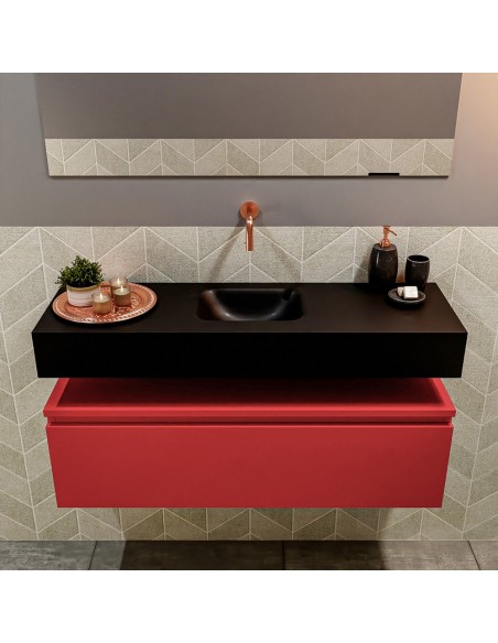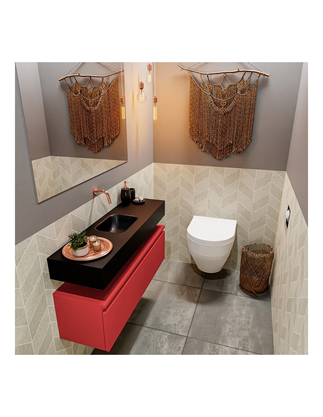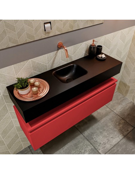 ANDOR Komplet badmiljø centreret håndvask B100 cm MDF - Rød/Sort