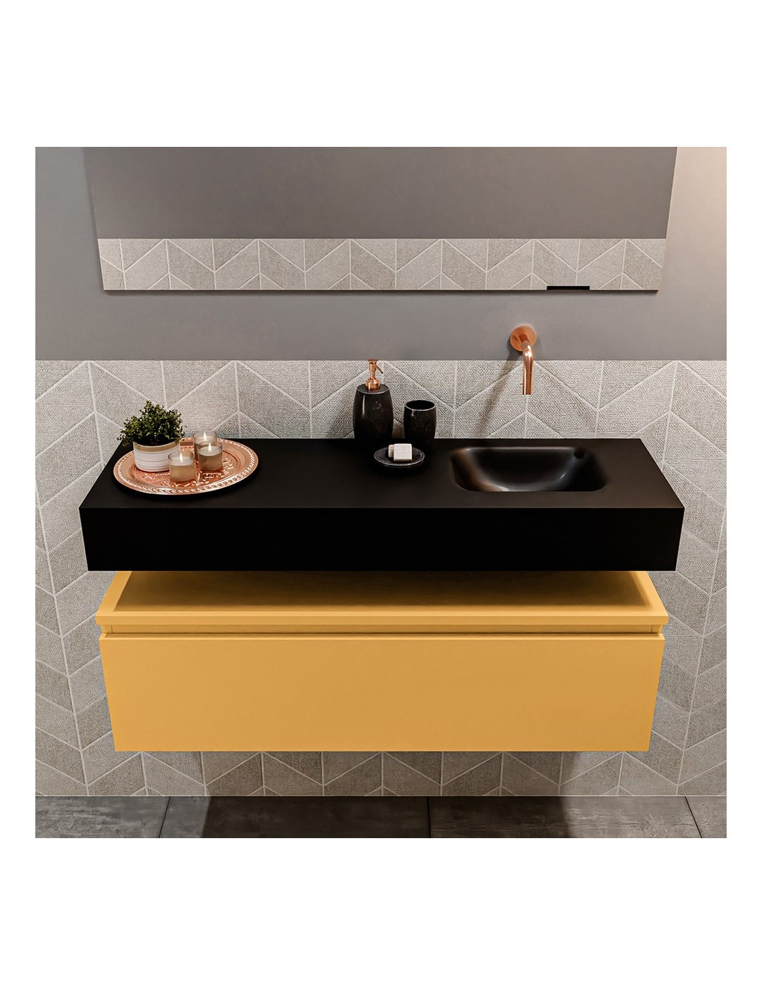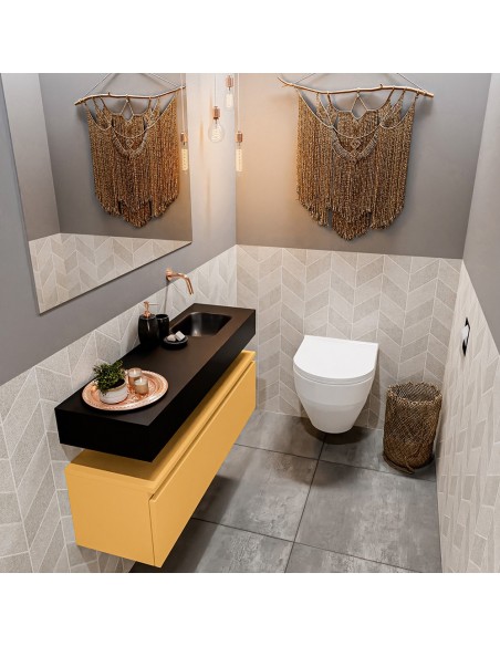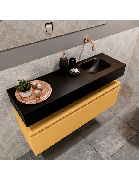 ANDOR Komplet badmiljø højrevendt håndvask B100 cm MDF - Okker/Sort