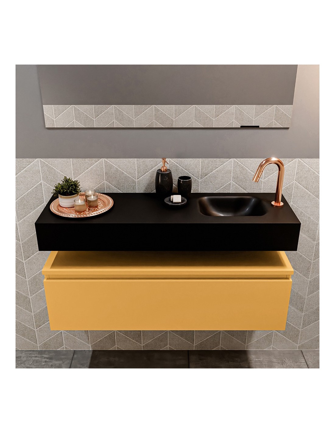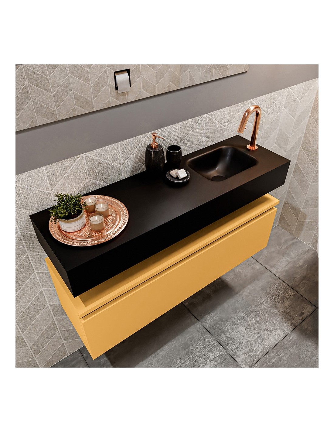 ANDOR Komplet badmiljø højrevendt håndvask B100 cm MDF - Okker/Sort