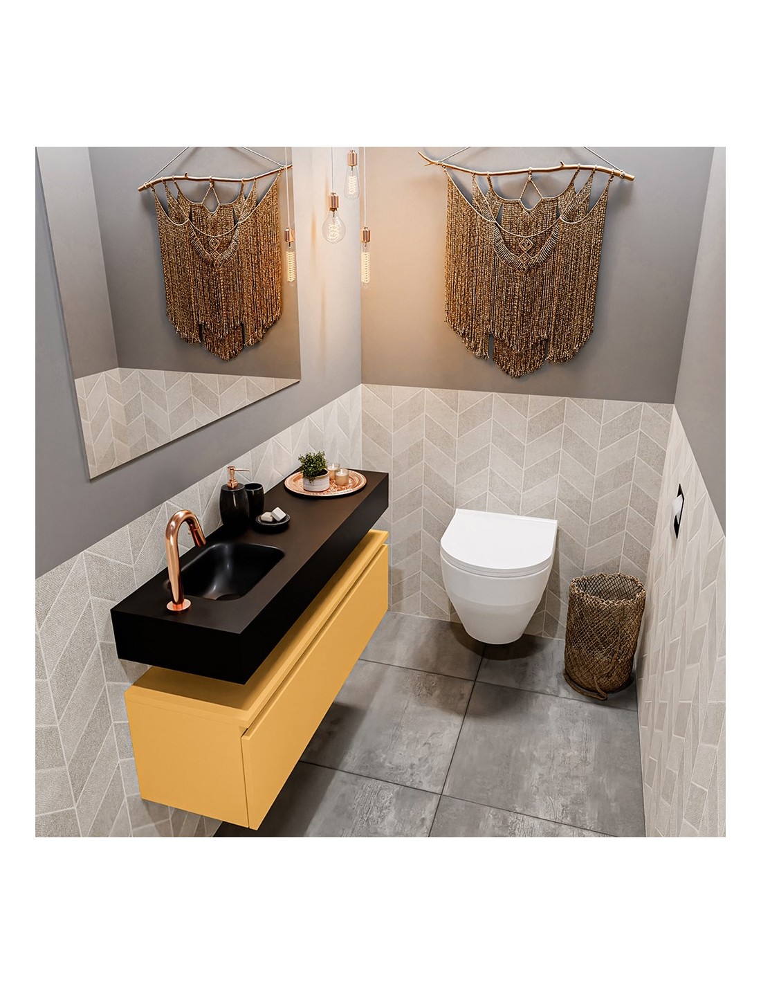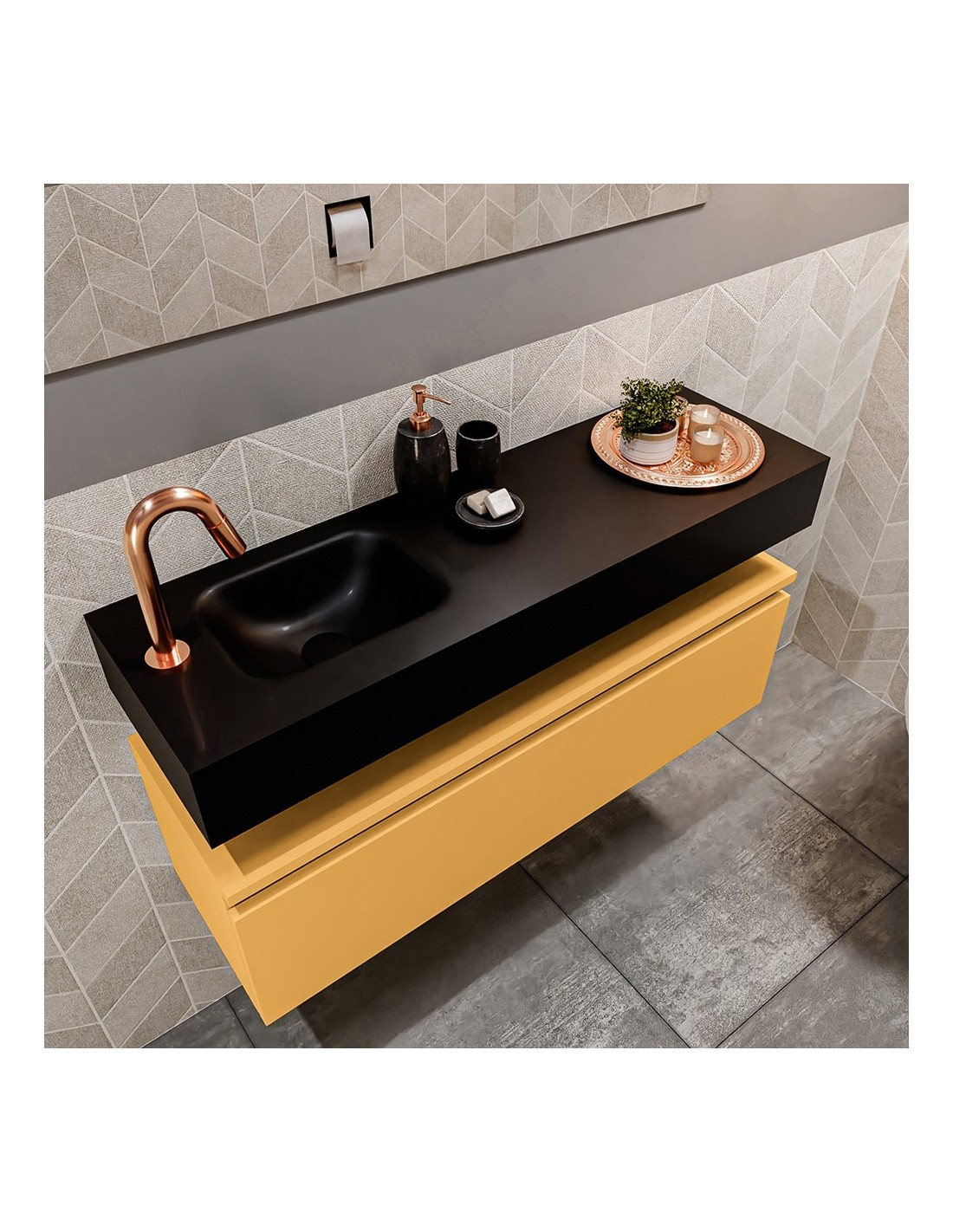 ANDOR Komplet badmiljø venstrevendt håndvask B100 cm MDF - Okker/Sort
