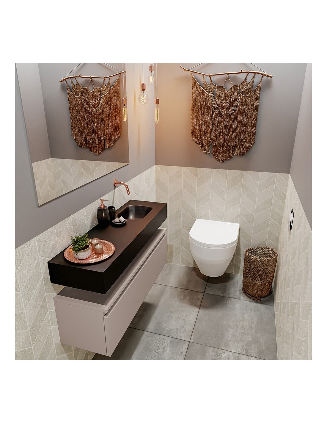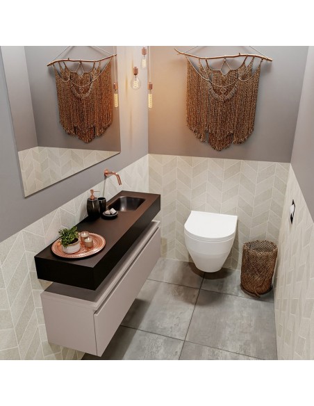 ANDOR Komplet badmiljø højrevendt håndvask B100 cm MDF - Røg/Sort