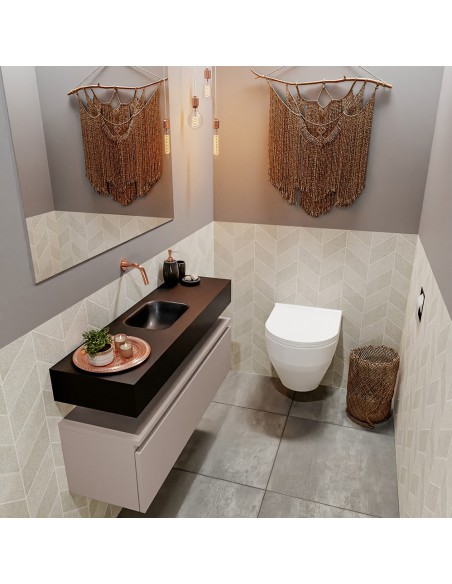 ANDOR Komplet badmiljø centreret håndvask B100 cm MDF - Røg/Sort