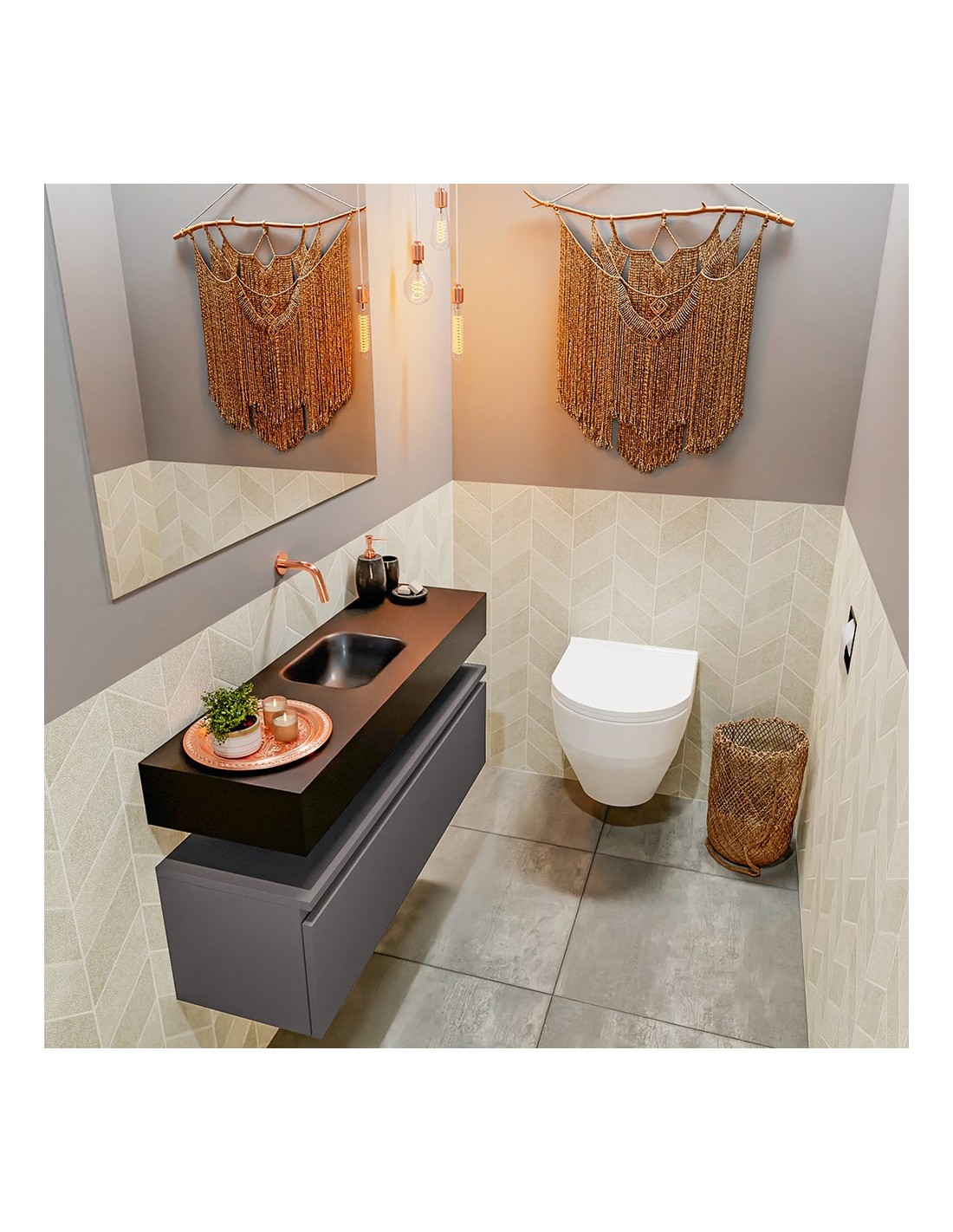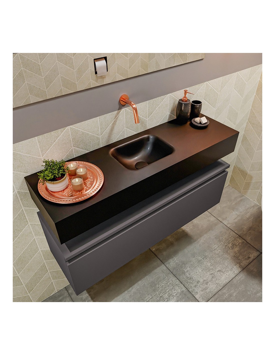 ANDOR Komplet badmiljø centreret håndvask B100 cm MDF - Mørkegrå/Sort