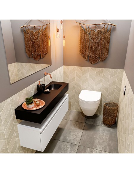 ANDOR Komplet badmiljø højrevendt håndvask B100 cm MDF - Talkum/Sort