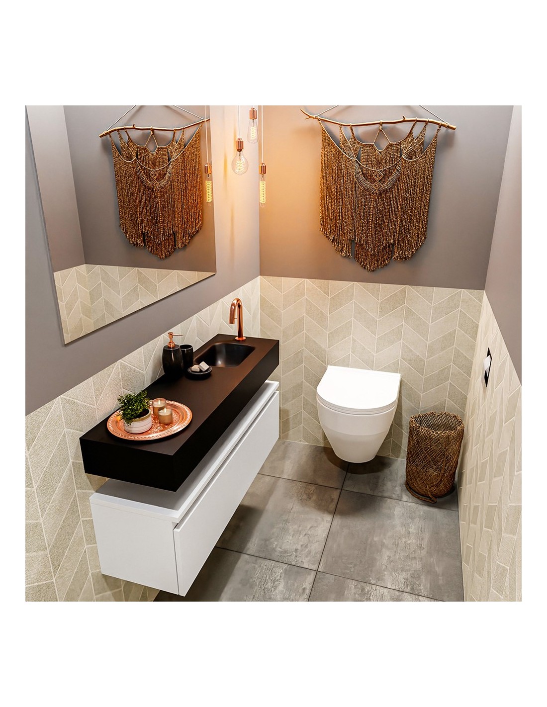ANDOR Komplet badmiljø højrevendt håndvask B100 cm MDF - Talkum/Sort