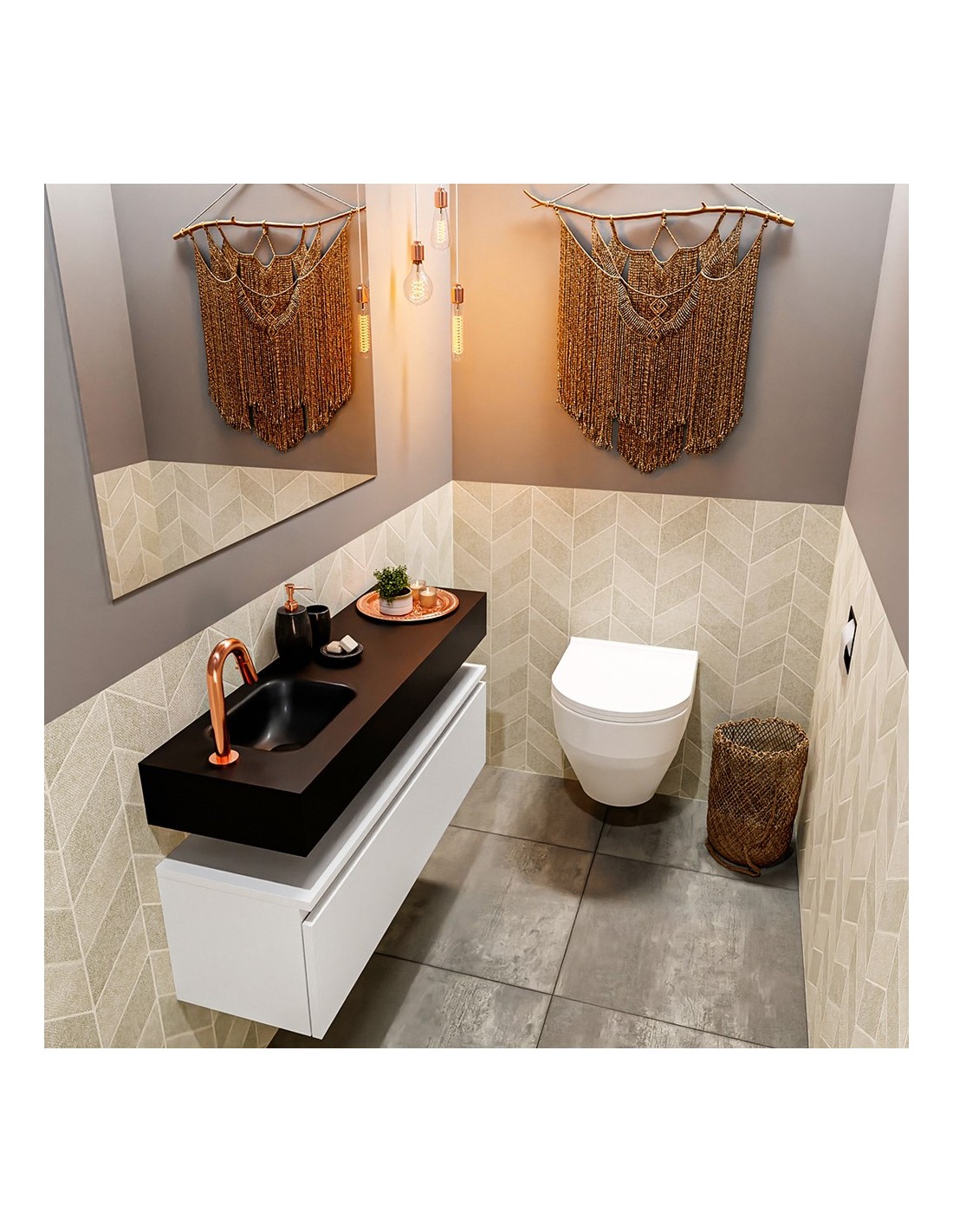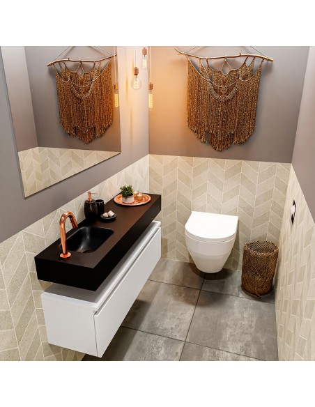 ANDOR Komplet badmiljø venstrevendt håndvask B100 cm MDF - Talkum/Sort
