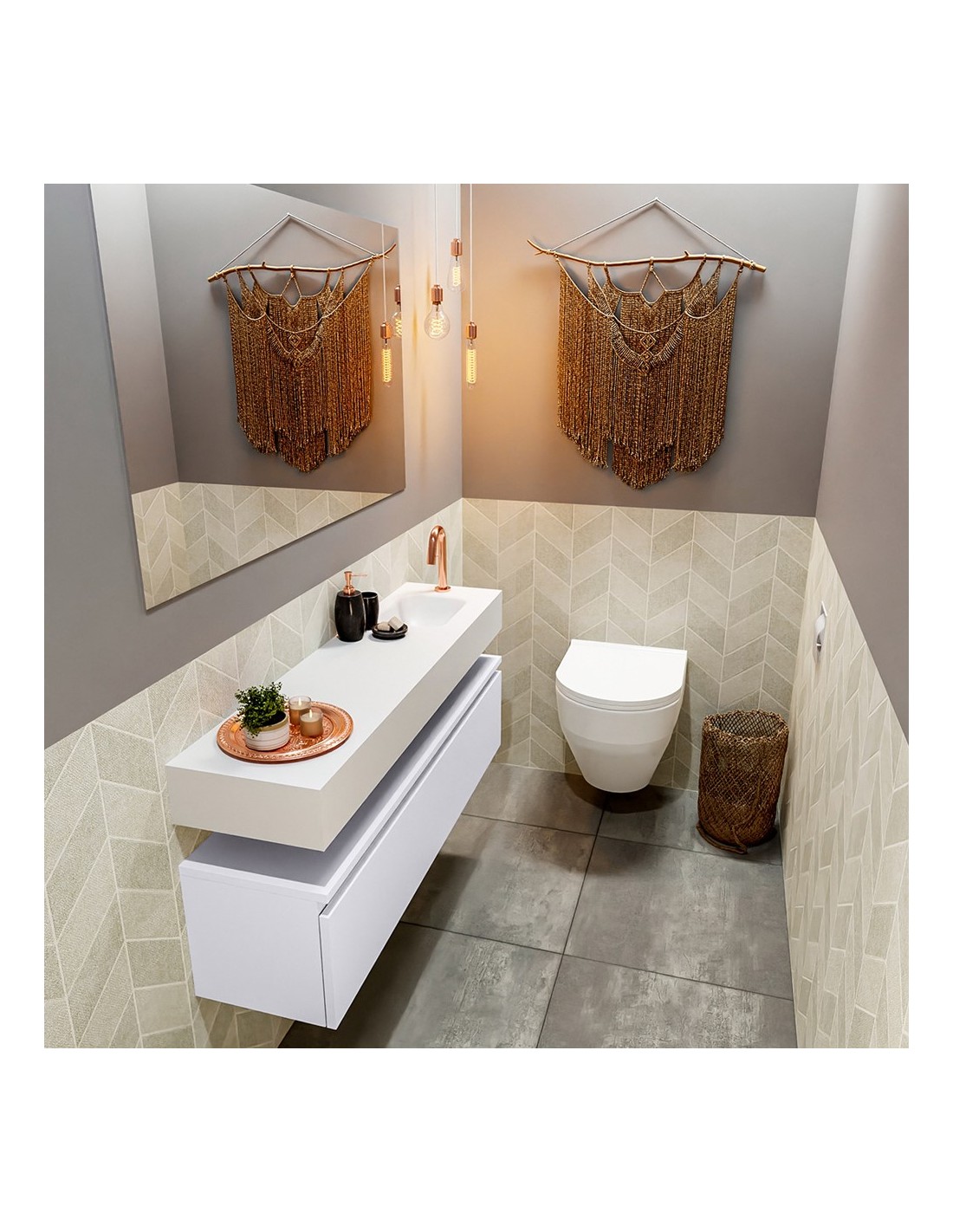 ANDOR Komplet badmiljø højrevendt håndvask B120 cm MDF - Svag grå/Talkum