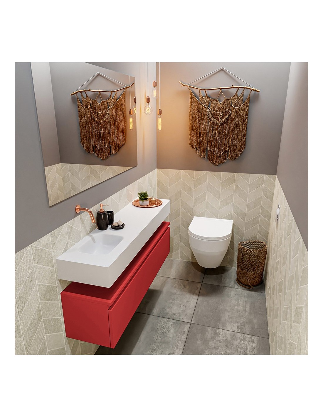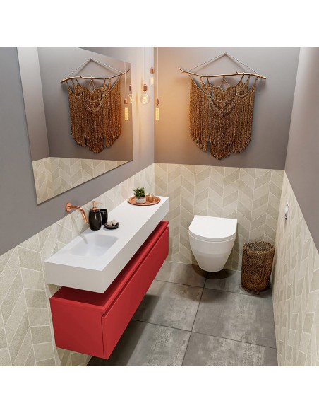 ANDOR Komplet badmiljø venstrevendt håndvask B120 cm MDF - Rød/Talkum