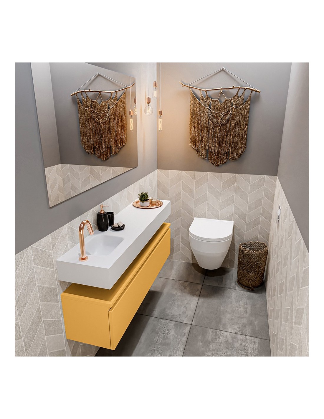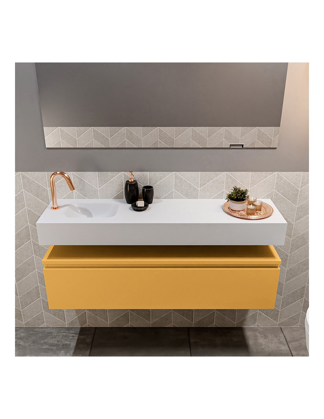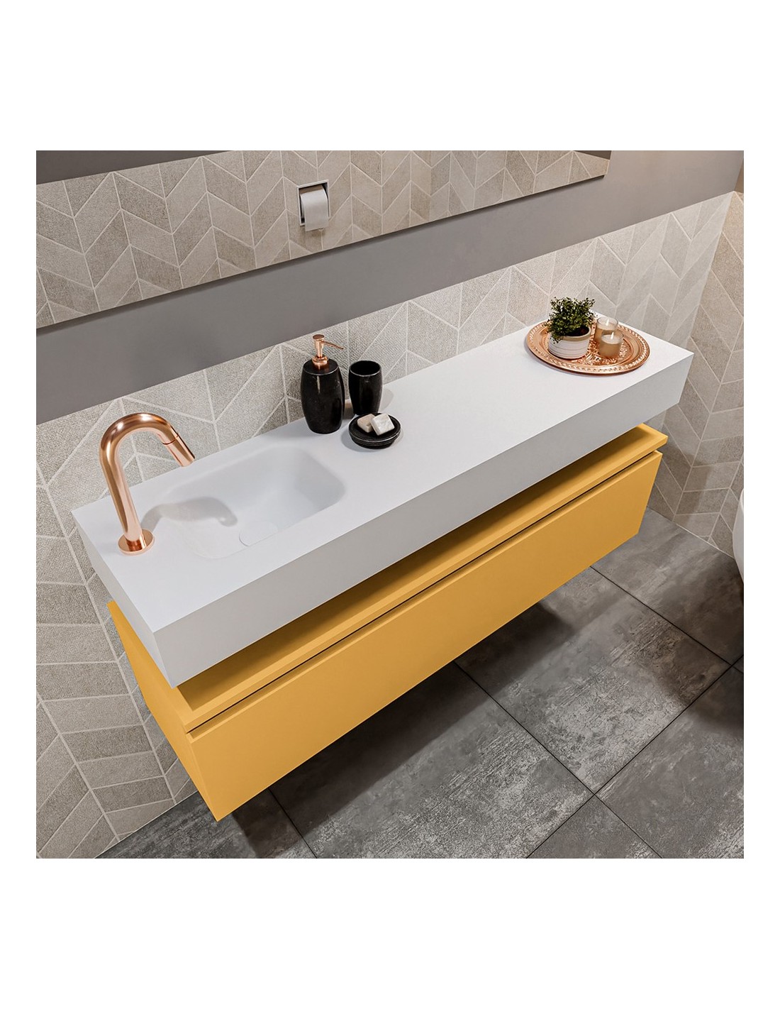 ANDOR Komplet badmiljø venstrevendt håndvask B120 cm MDF - Okker/Talkum