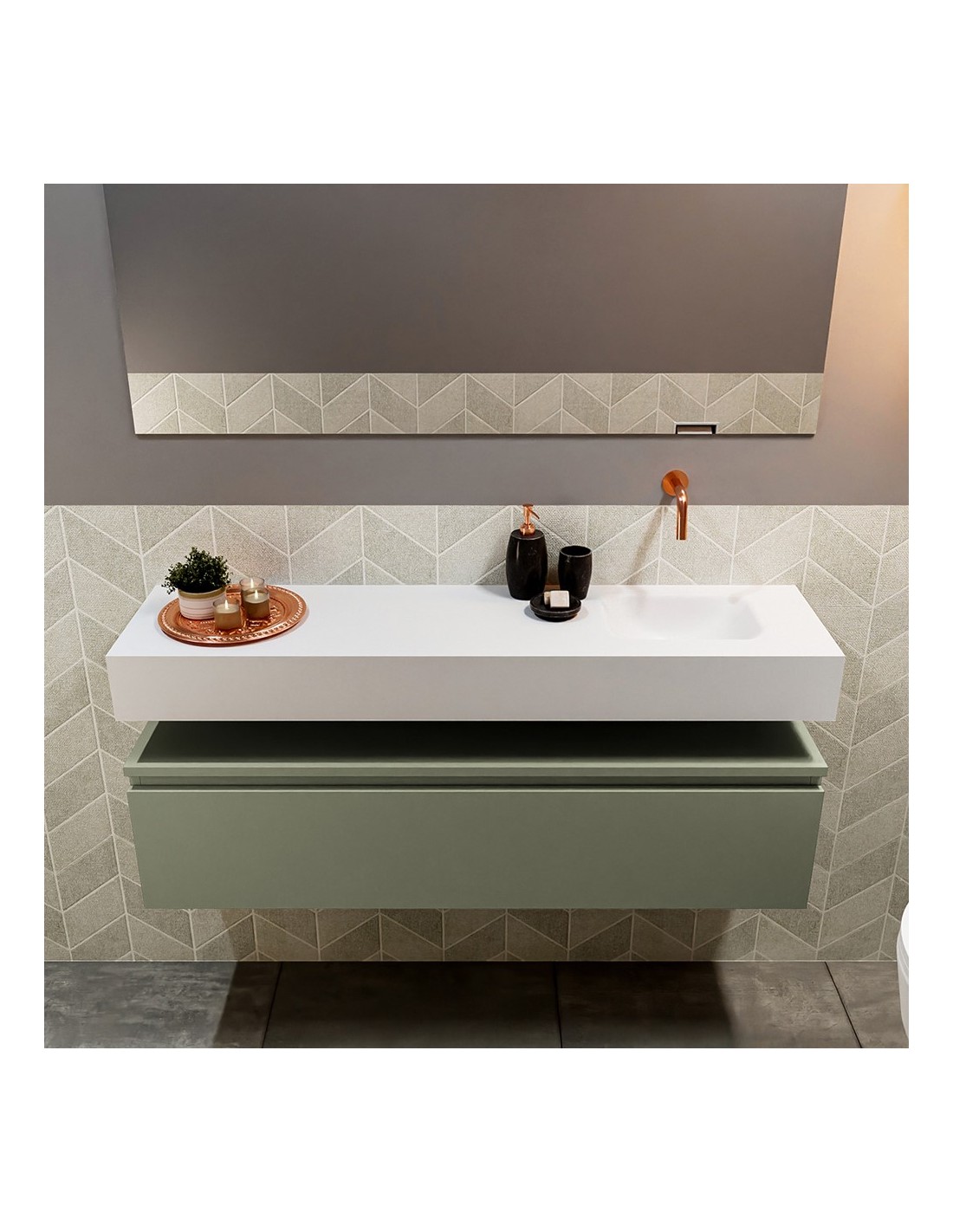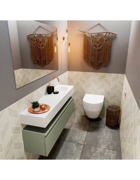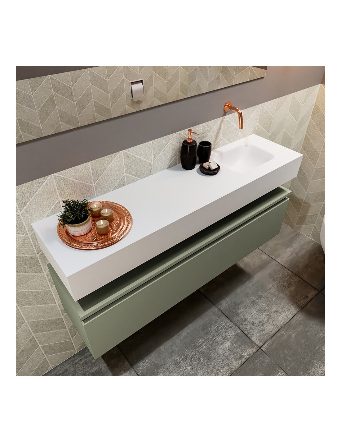 ANDOR Komplet badmiljø højrevendt håndvask B120 cm MDF - Armygrøn/Talkum