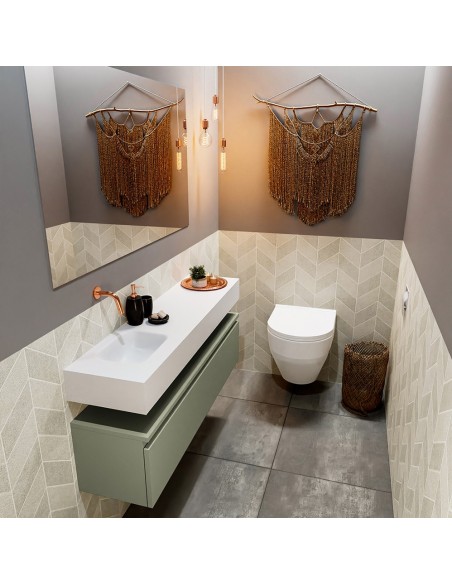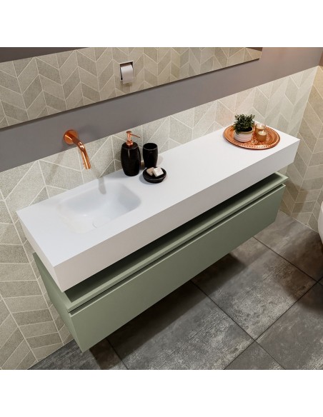 ANDOR Komplet badmiljø venstrevendt håndvask B120 cm MDF - Armygrøn/Talkum