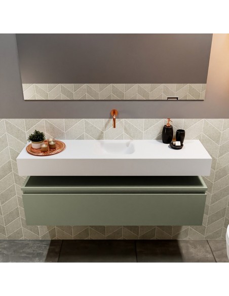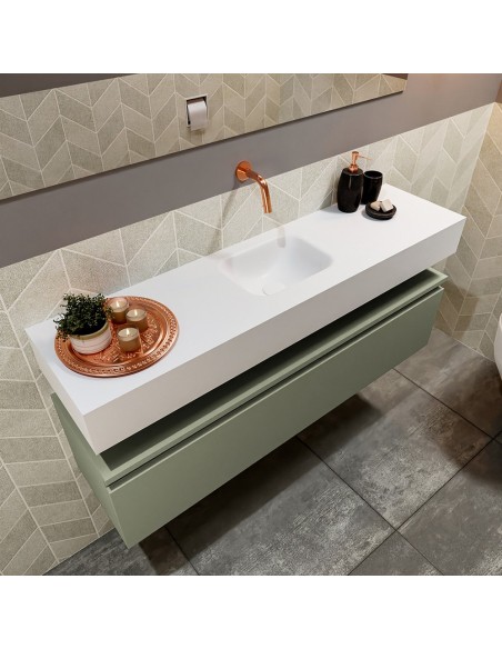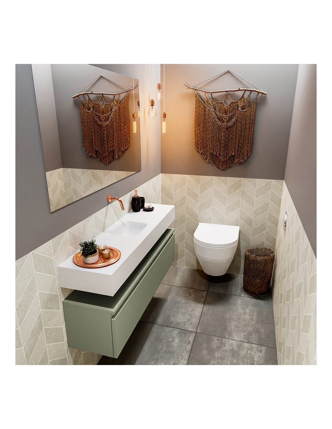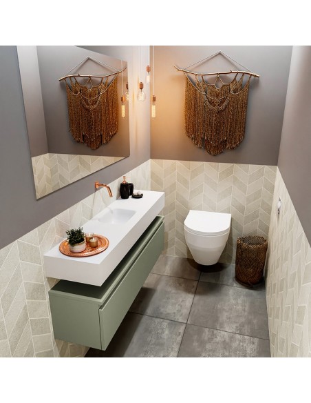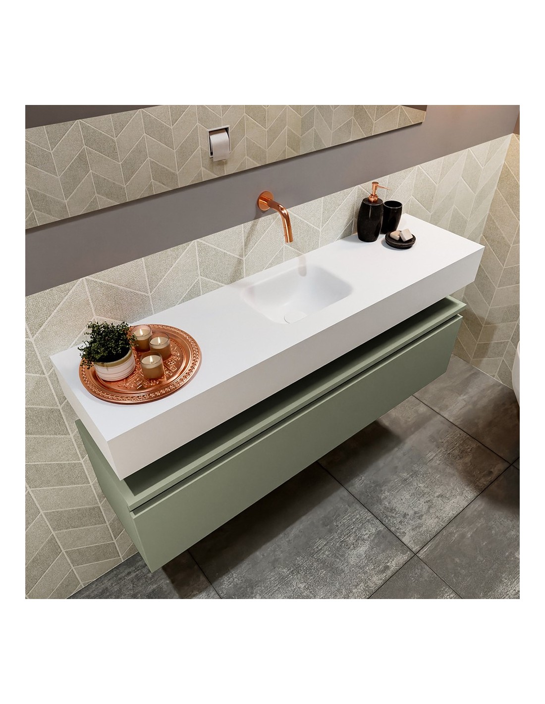 ANDOR Komplet badmiljø centreret håndvask B120 cm MDF - Armygrøn/Talkum