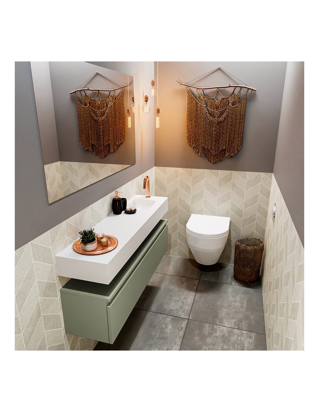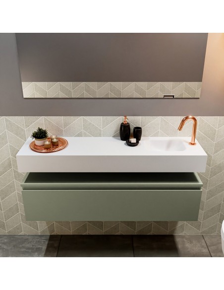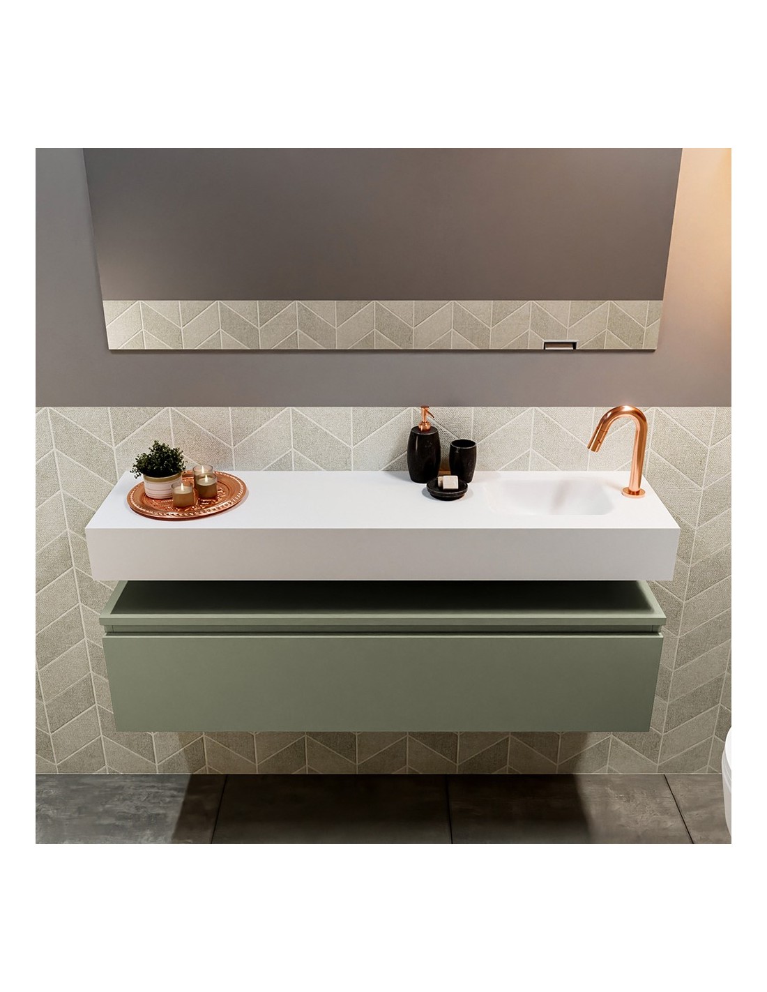 ANDOR Komplet badmiljø højrevendt håndvask B120 cm MDF - Armygrøn/Talkum