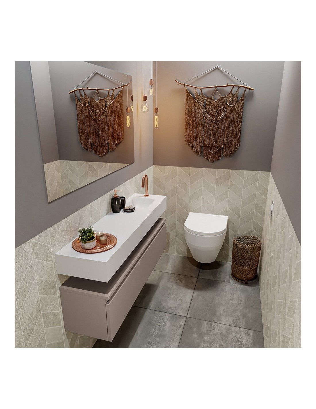 ANDOR Komplet badmiljø højrevendt håndvask B120 cm MDF - Røg/Talkum