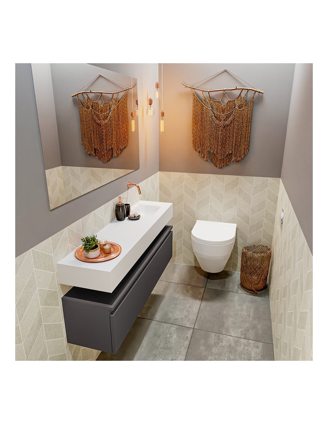 ANDOR Komplet badmiljø højrevendt håndvask B120 cm MDF - Mørkegrå/Talkum