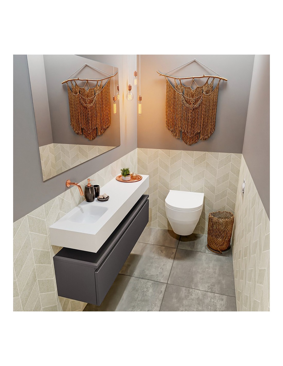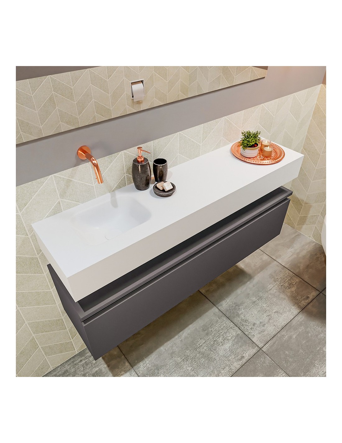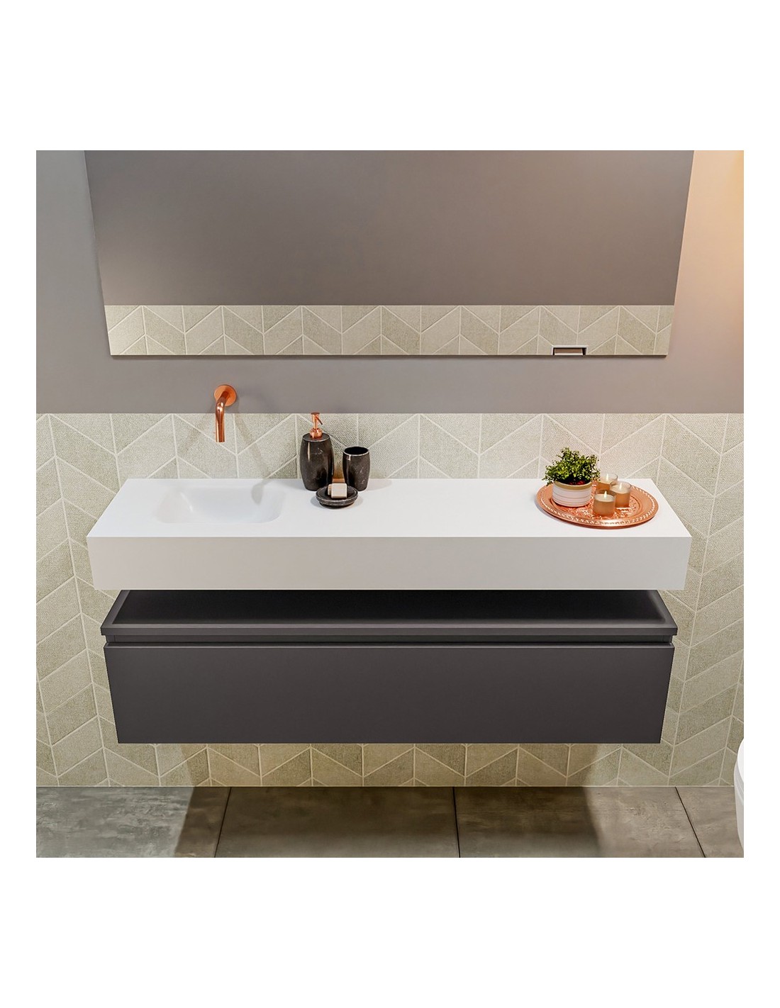 ANDOR Komplet badmiljø venstrevendt håndvask B120 cm MDF - Mørkegrå/Talkum