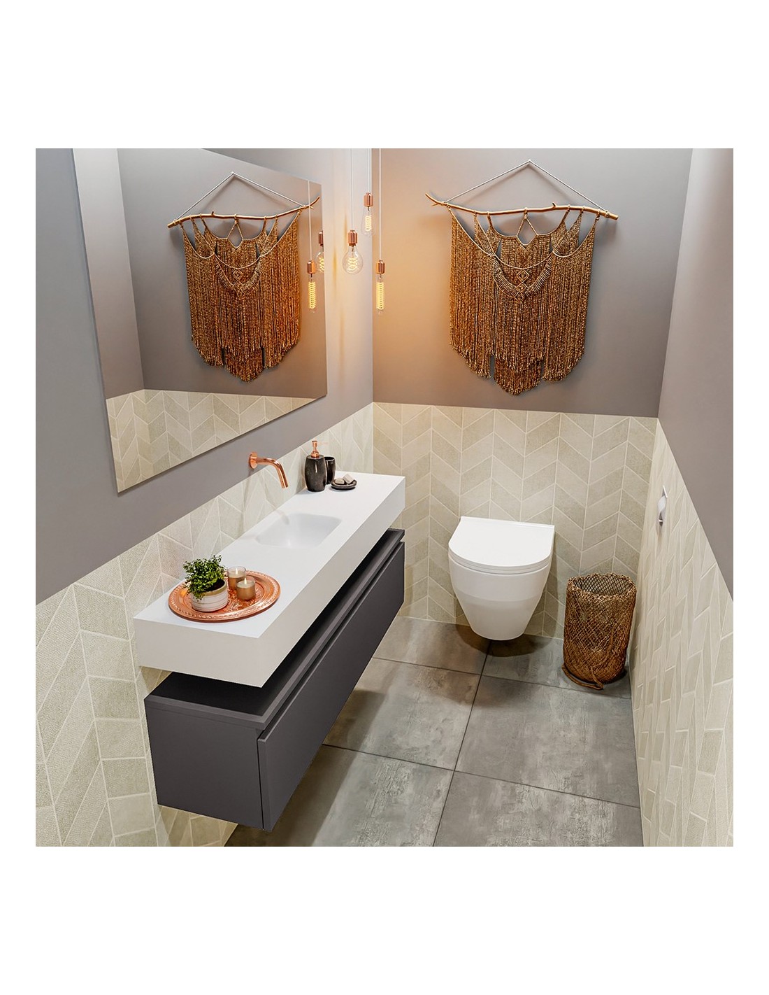 ANDOR Komplet badmiljø centreret håndvask B120 cm MDF - Mørkegrå/Talkum