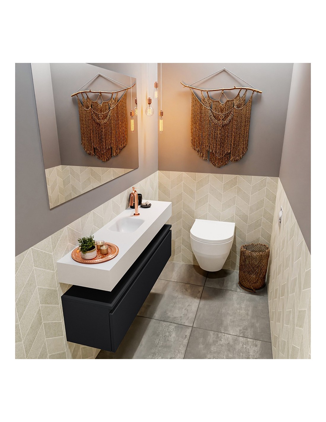 ANDOR Komplet badmiljø centreret håndvask B120 cm MDF - Sort/Talkum