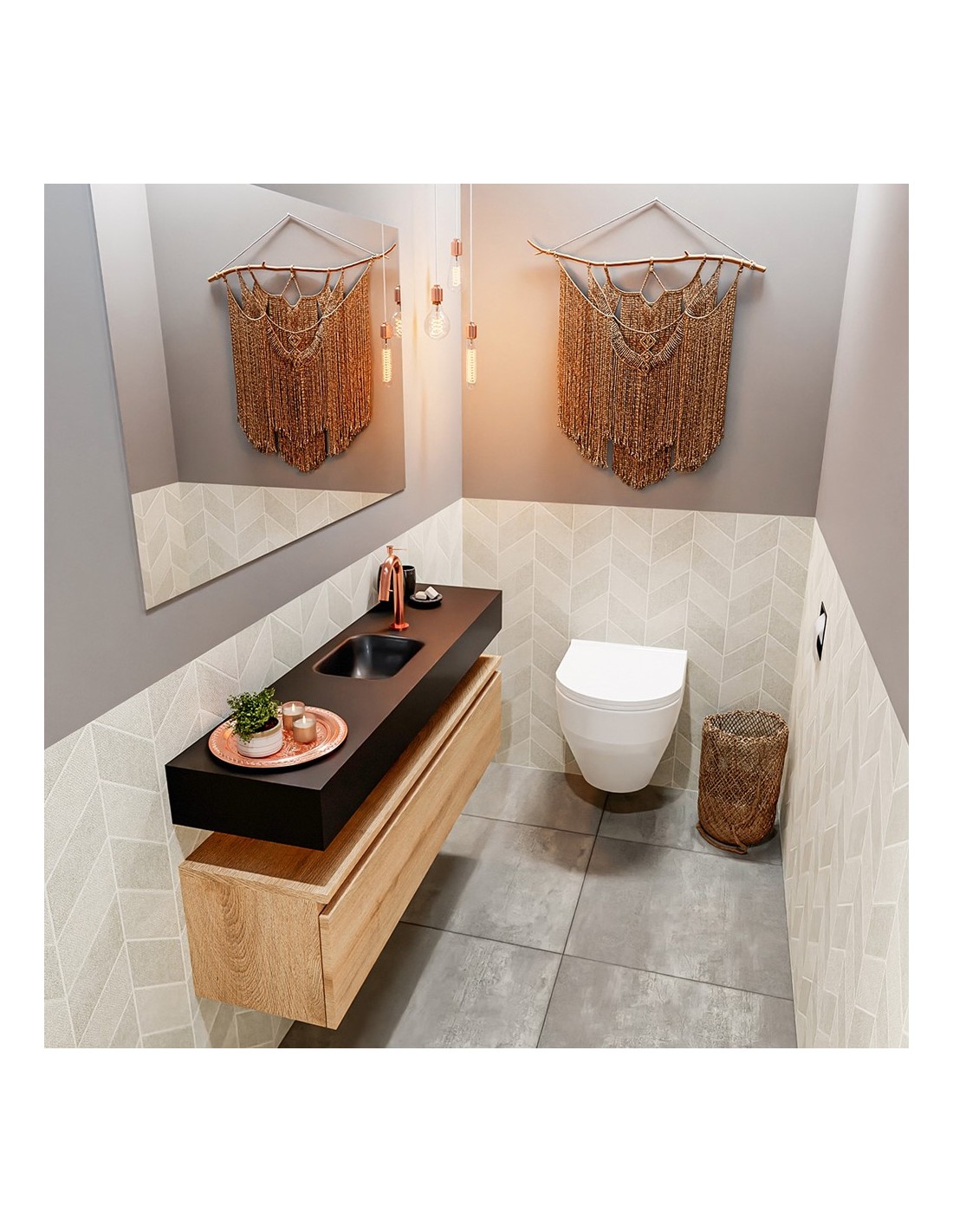 ANDOR Komplet badmiljø centreret håndvask B120 cm MDF - Vasket eg/Sort