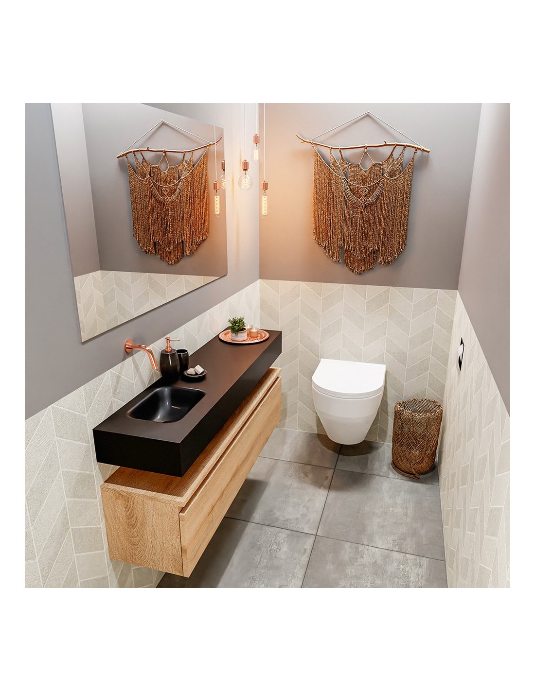 ANDOR Komplet badmiljø venstrevendt håndvask B120 cm MDF - Vasket eg/Sort