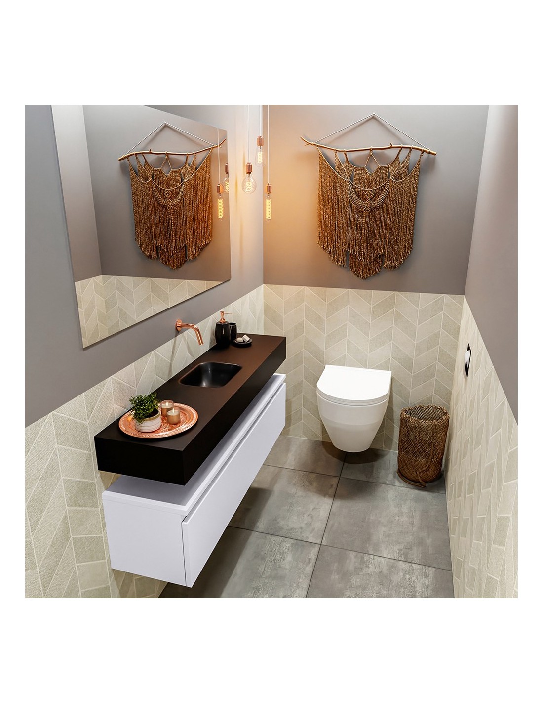 ANDOR Komplet badmiljø centreret håndvask B120 cm MDF - Svag grå/Sort