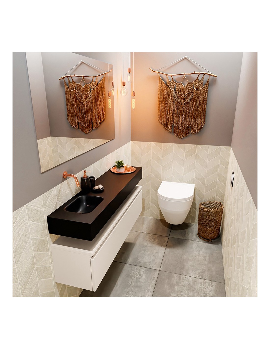 ANDOR Komplet badmiljø venstrevendt håndvask B120 cm MDF - Linned/Sort