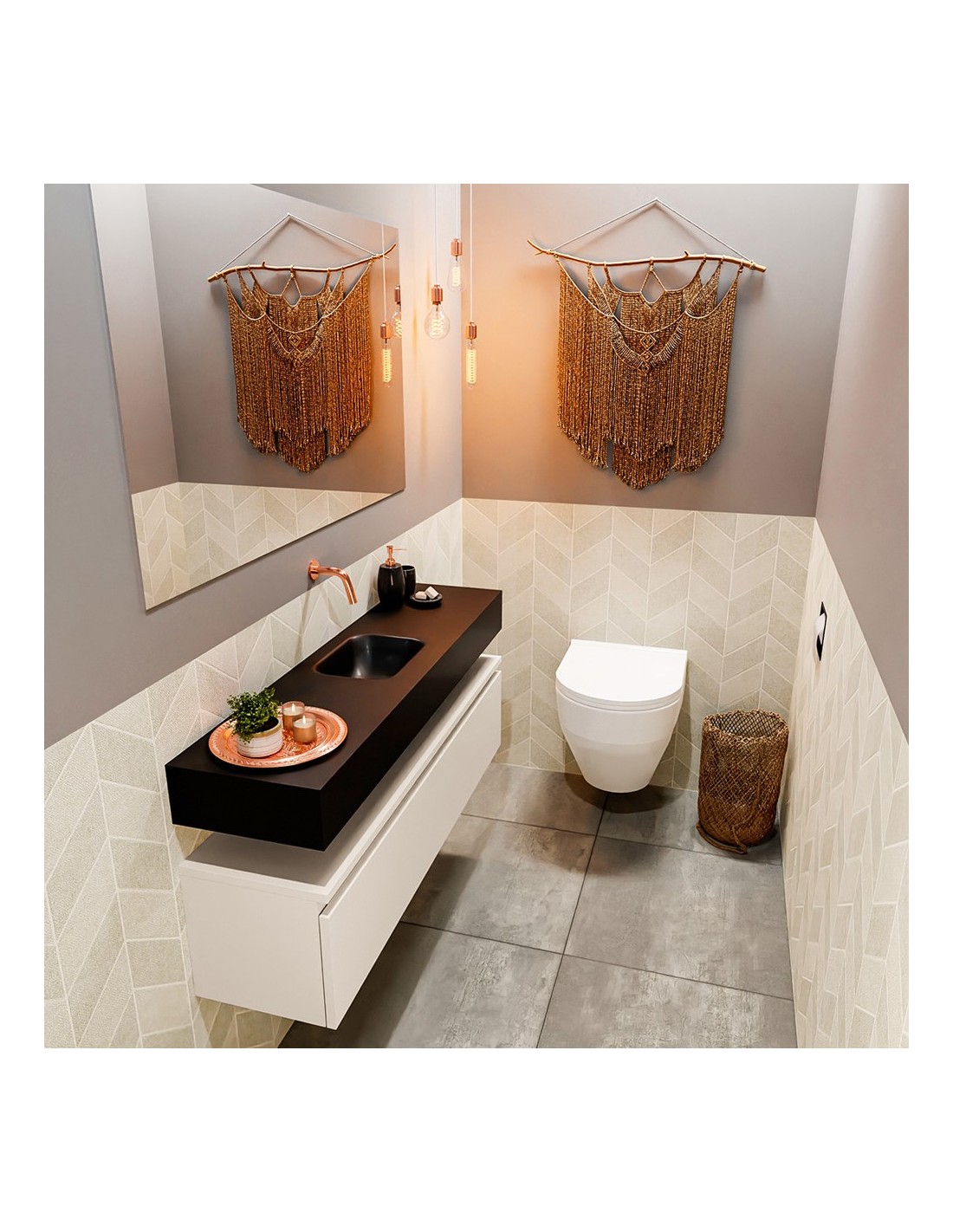 ANDOR Komplet badmiljø centreret håndvask B120 cm MDF - Linned/Sort
