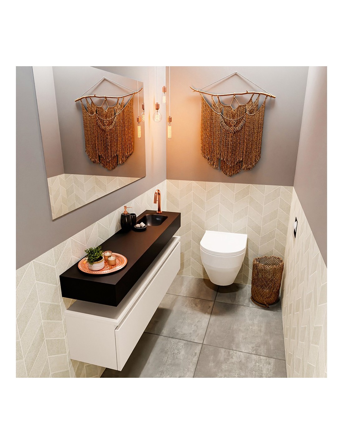 ANDOR Komplet badmiljø højrevendt håndvask B120 cm MDF - Linned/Sort