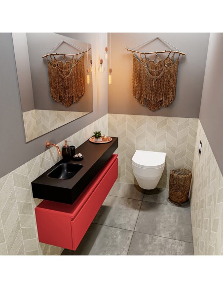 ANDOR Komplet badmiljø venstrevendt håndvask B120 cm MDF - Rød/Sort